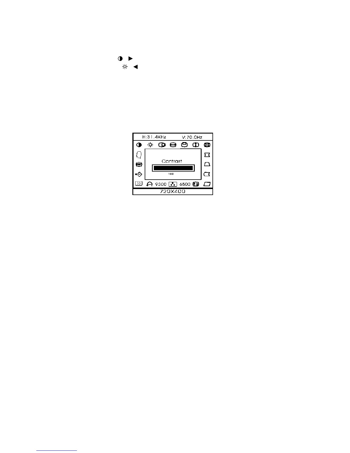 The monitor controls are accessed by pressing button MENU to enable OSD