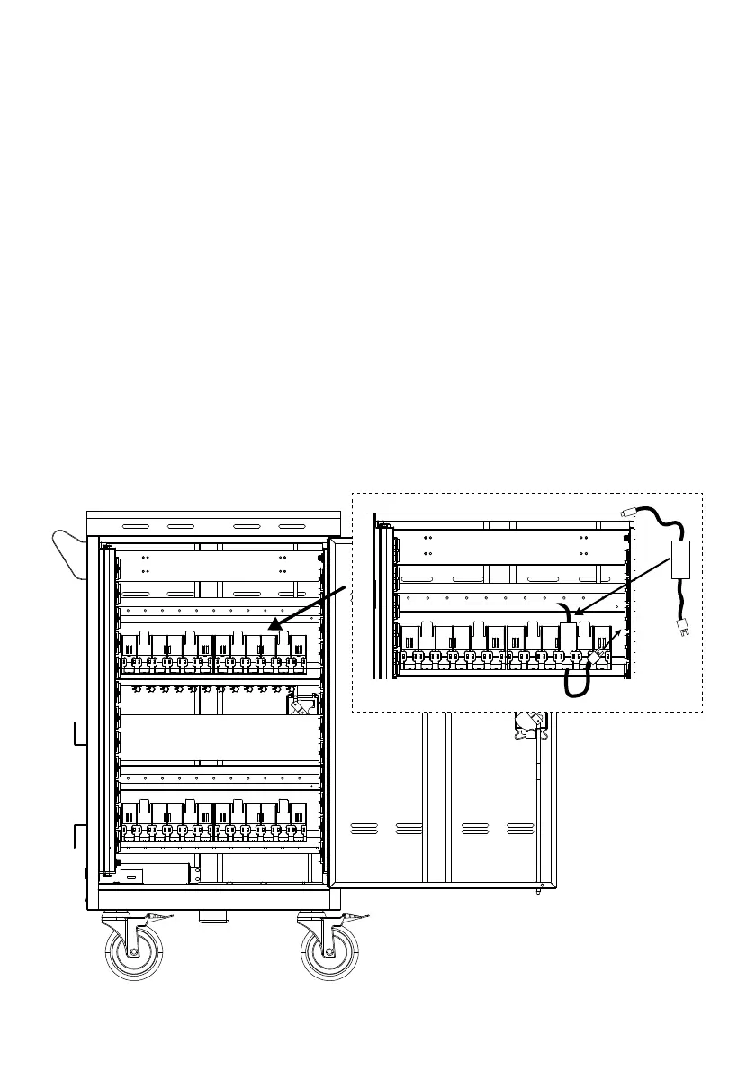 3. Pase el extremo de CC del cable del adaptador hacia el frontal del carrito a