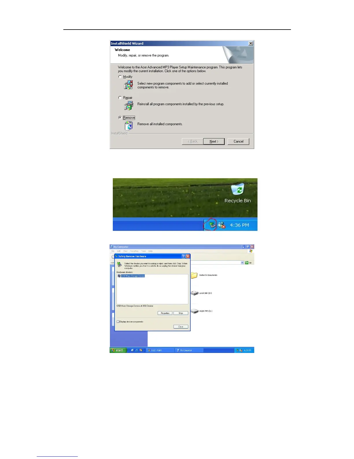 removed safely from the system”, and then you can pull out the Acer Advanced MP3