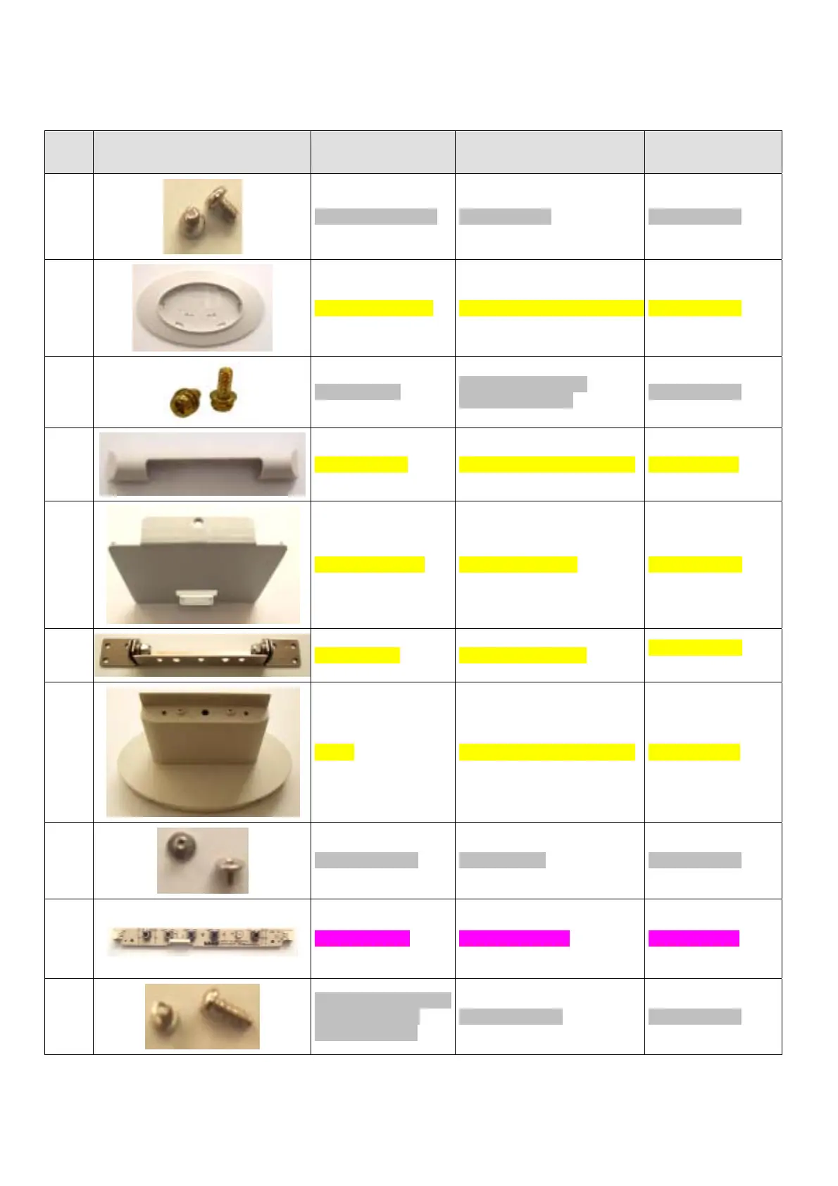 No. Photo Part Name Description Vendor No.