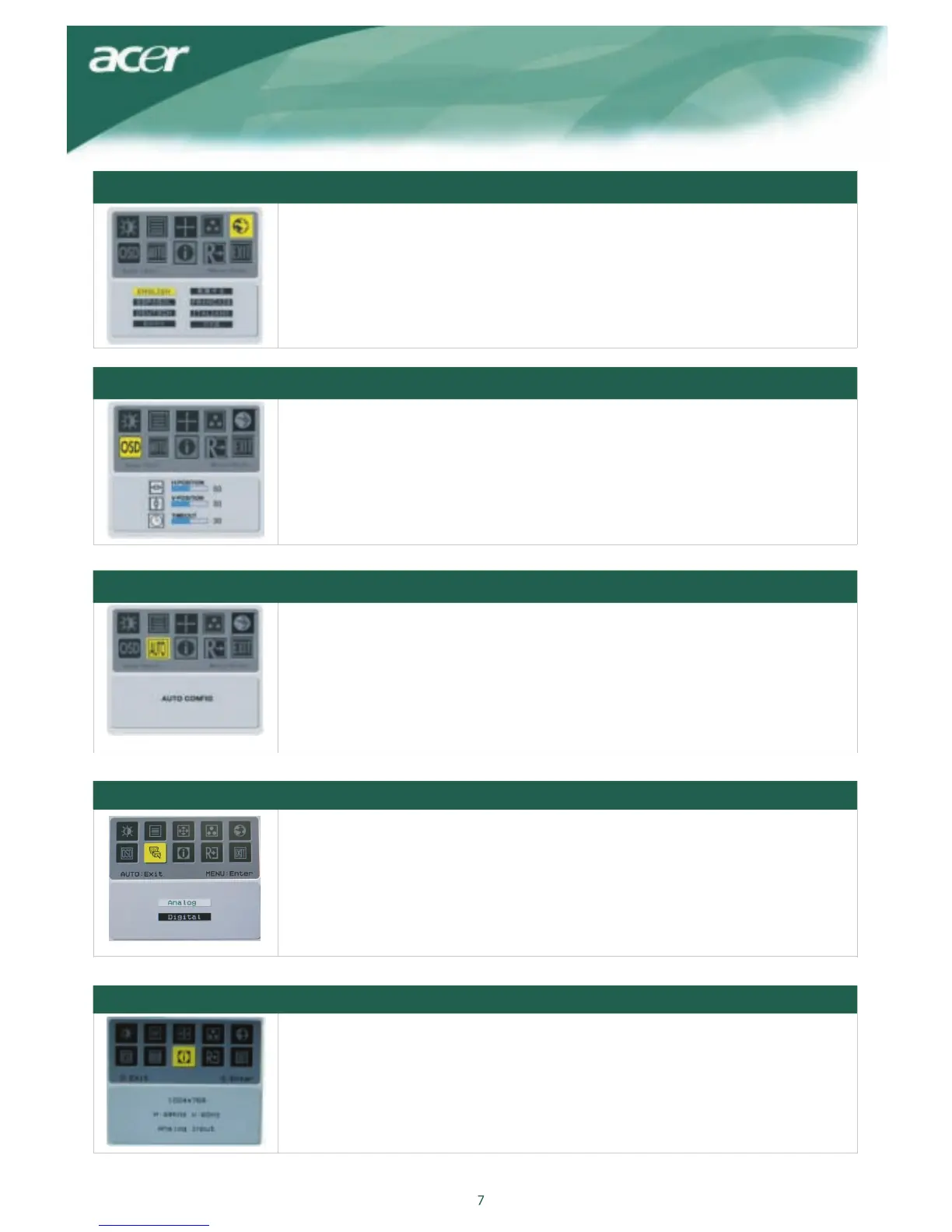 This changes the position of the OSD window on the screen.