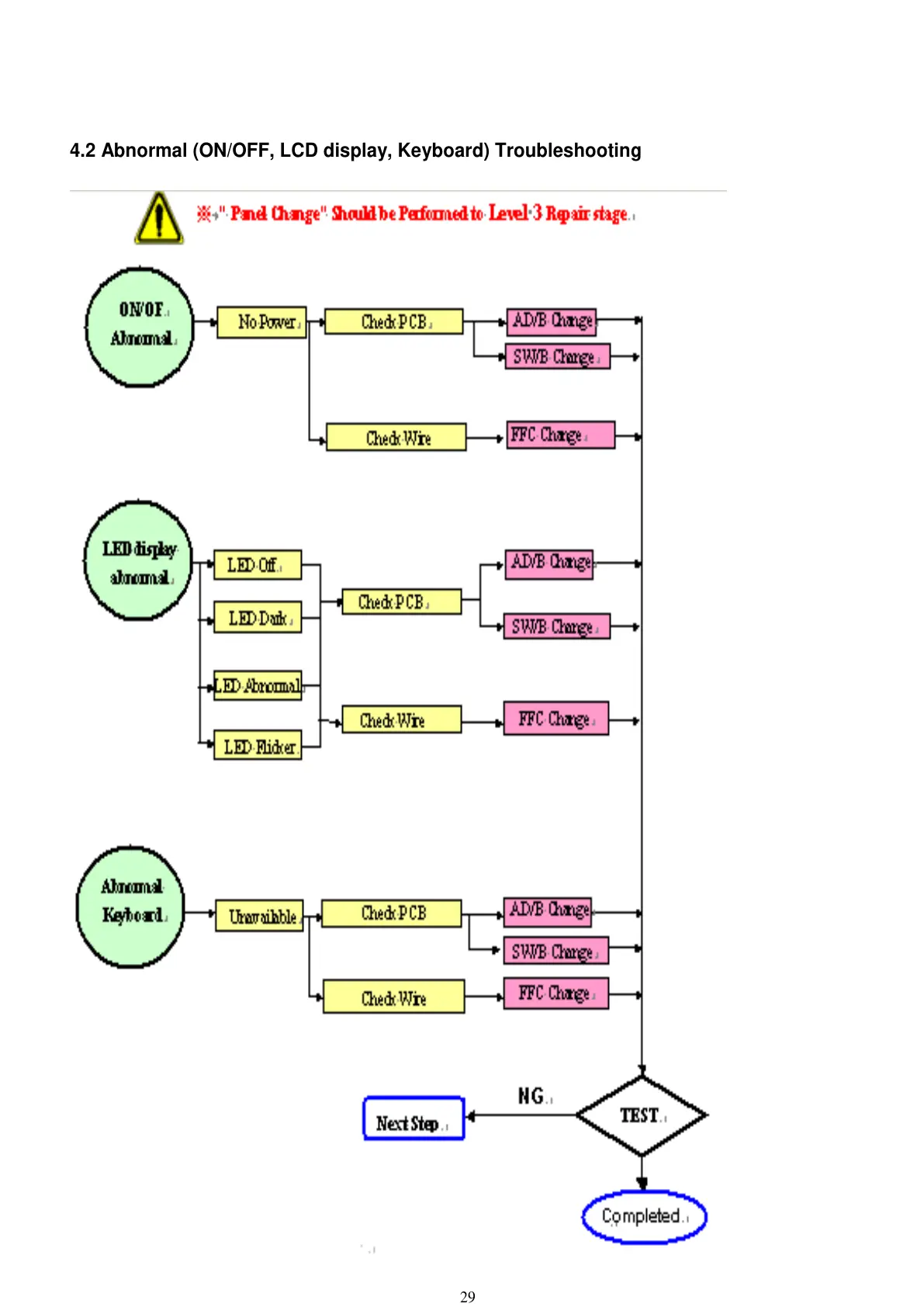 4.2 Abnormal (ON/OFF, LCD display, Keyboard) Troubleshooting