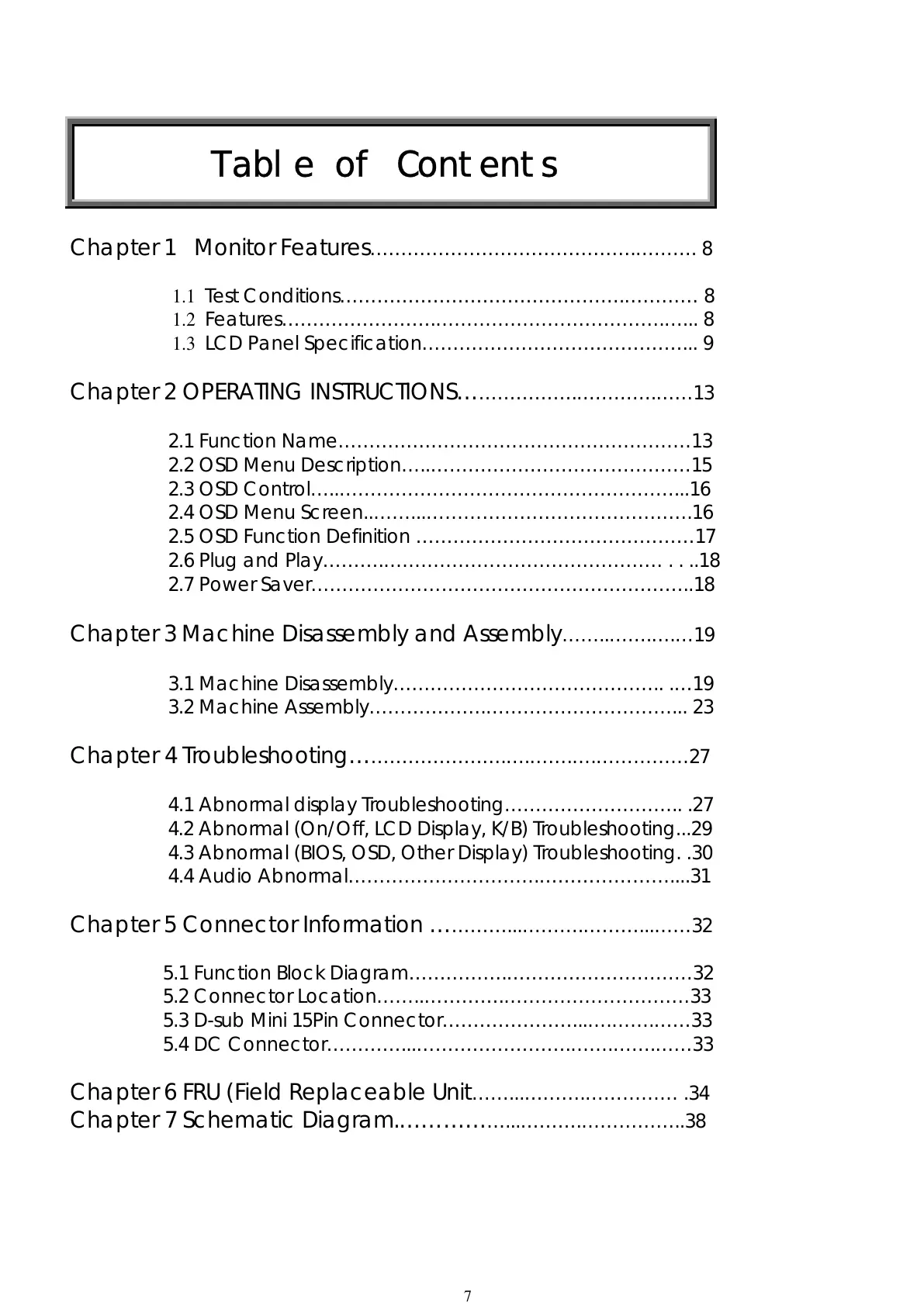 4.2 Abnormal (On/Off, LCD Display, K/B) Troubleshooting...29