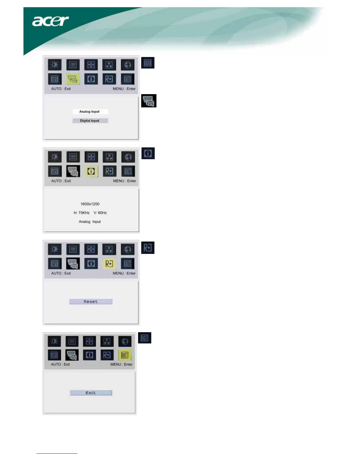 Acer AL2223WD - Auto Config; Input signal; Reset