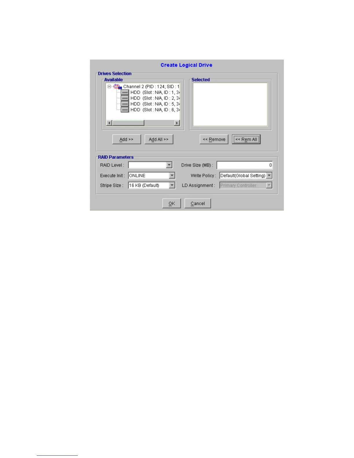 1 Select the physical drives that will be used in the LD. (See section 8.2.2.2.)
