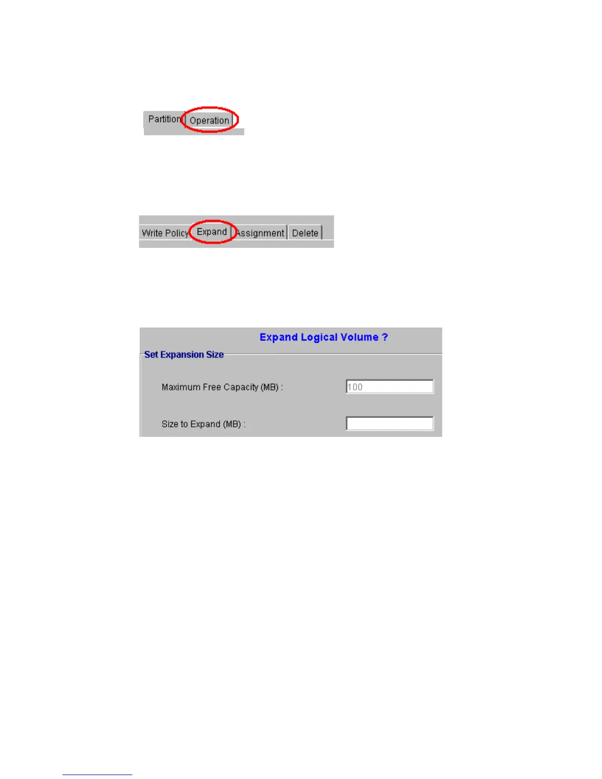4 Once the “Expand” tab has been selected the “Expand Logical Volume” window shown in Figure