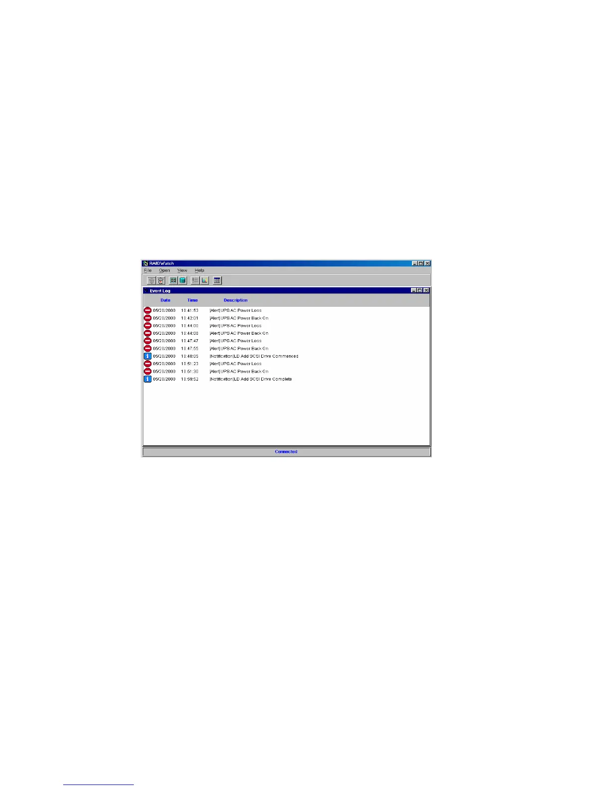 Altos RAIDWatch Manager can display a running log of all events that occur in the disk array system