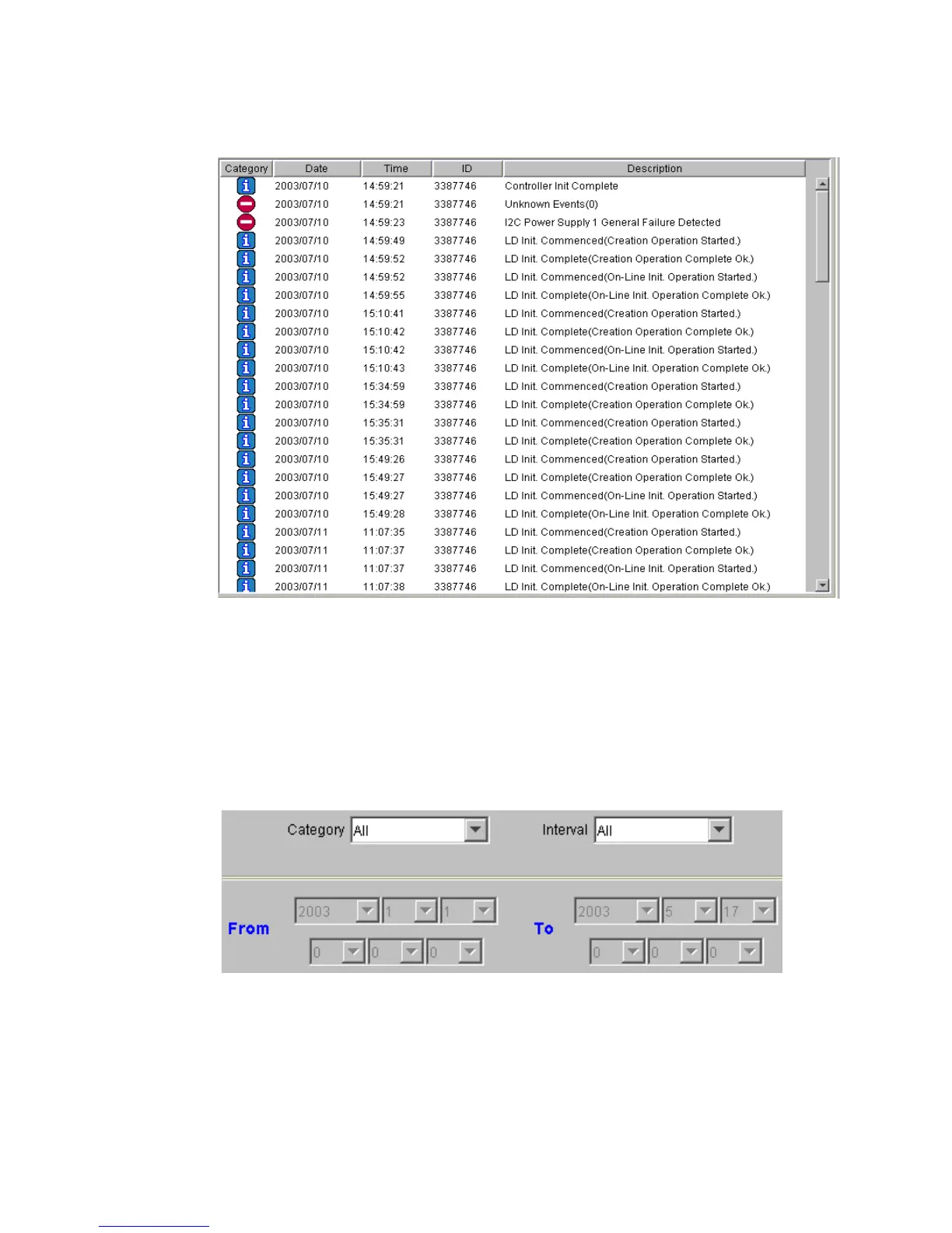 Information, Warning, or Critical. Events are listed in an ascending order.