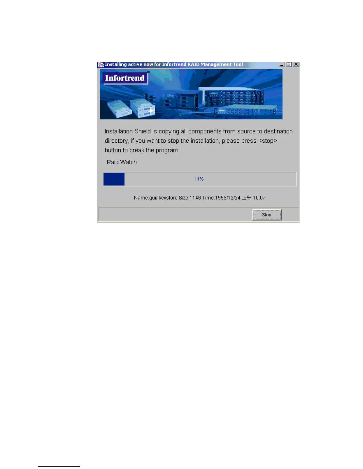 will appear. If you wish to stop the installation procedure, then click the “Stop” button. If you wish