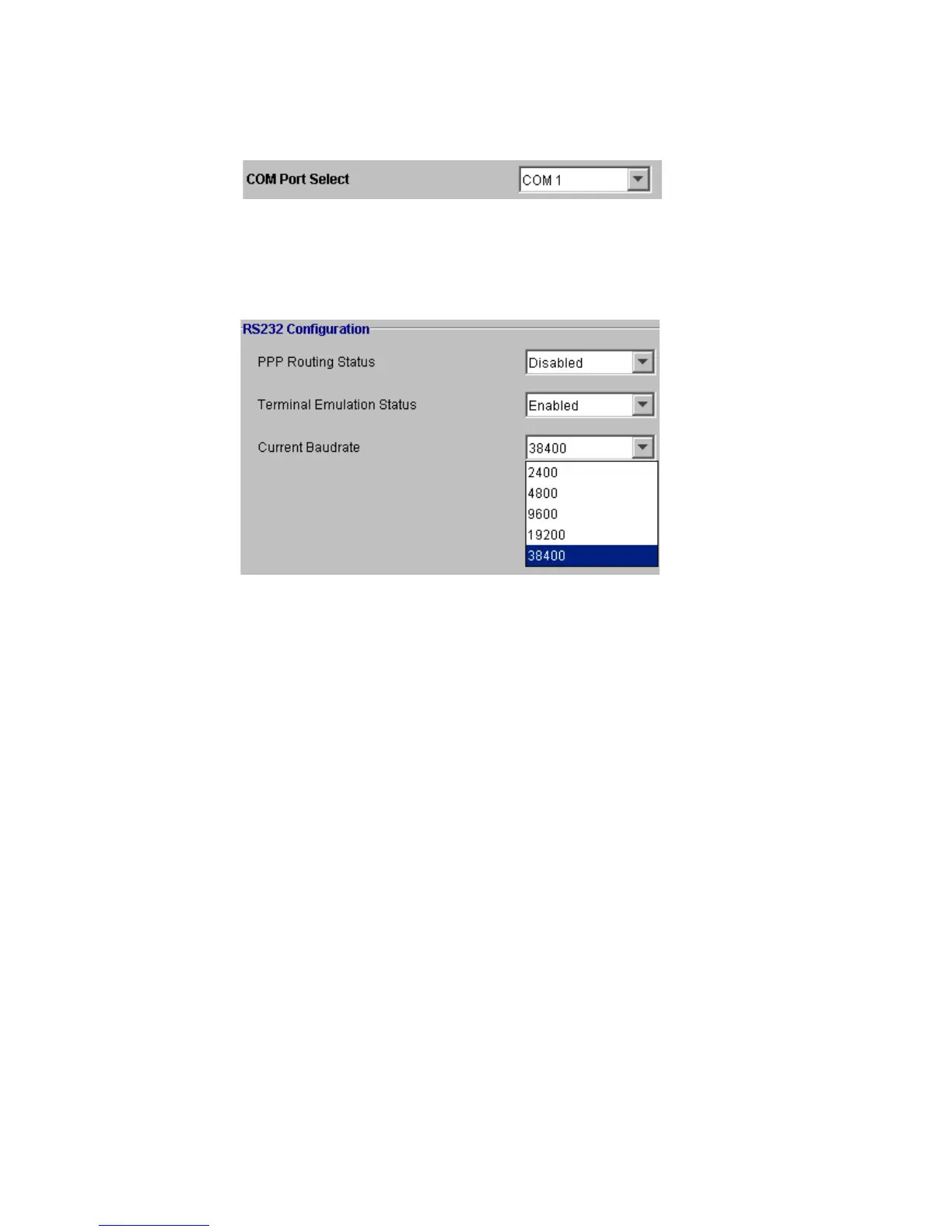 • Current Baudrate: Select the Baudrate from the following range: 2400, 4800, 9600, 19200,