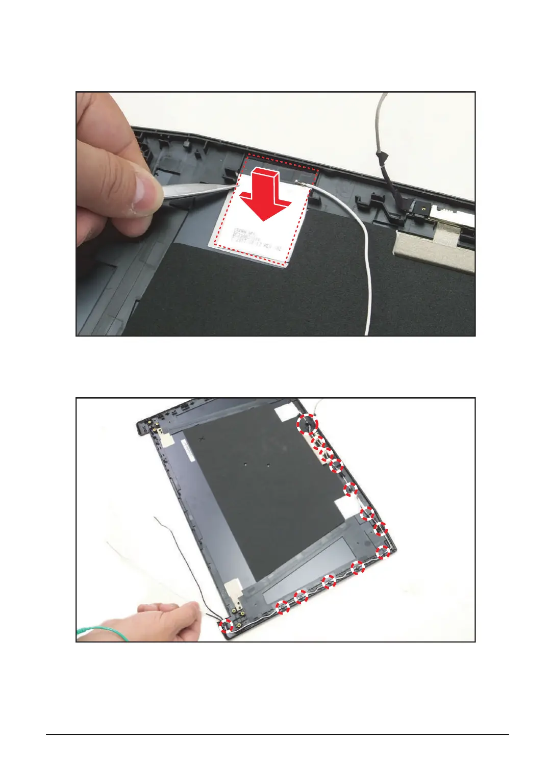 1. Attach the main antenna cable onto its slot on the LCD cover.