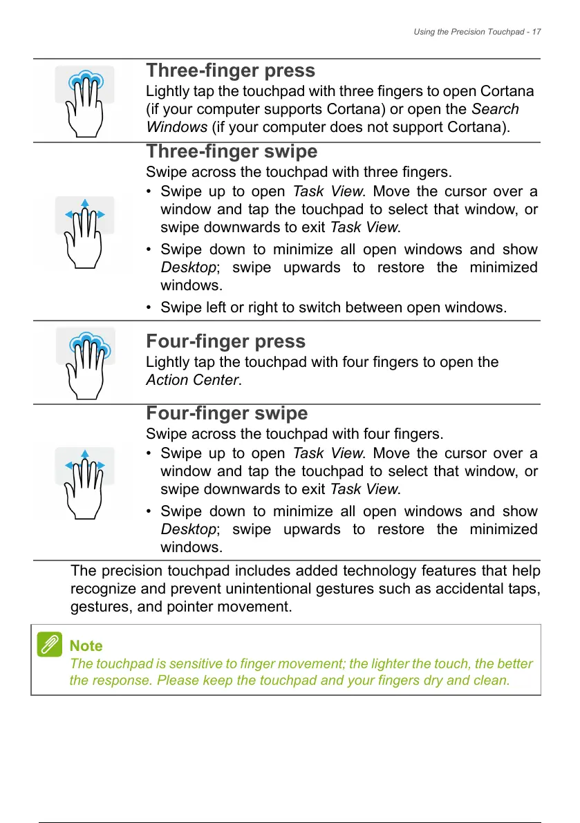 The touchpad is sensitive to finger movement; the lighter the touch, the better