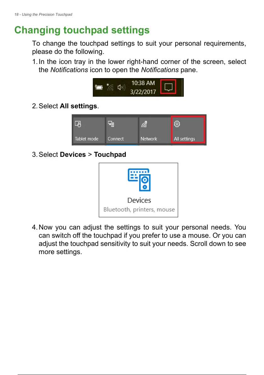 adjust the touchpad sensitivity to suit your needs. Scroll down to see