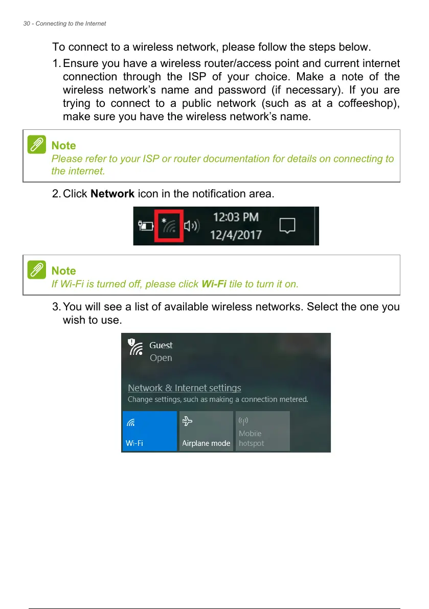 To connect to a wireless network, please follow the steps below.
