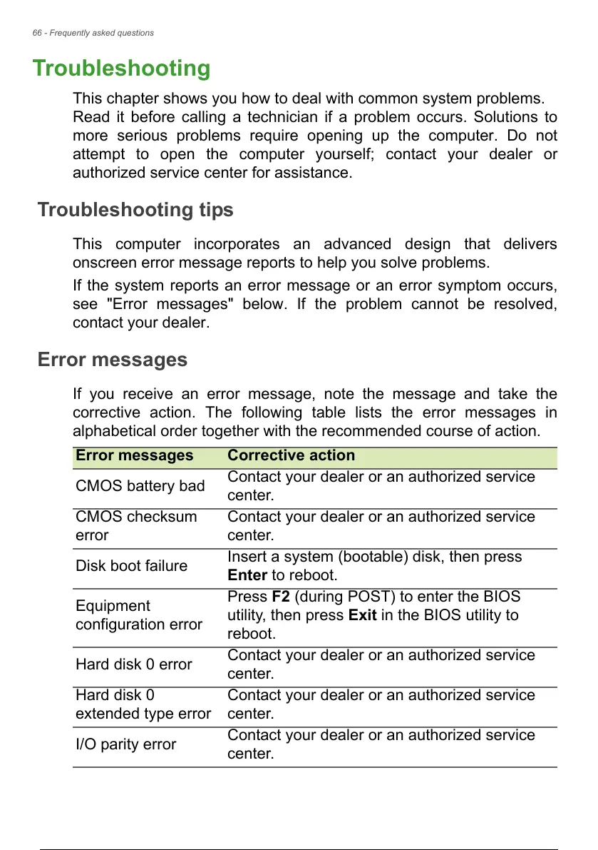 Error messages Corrective action