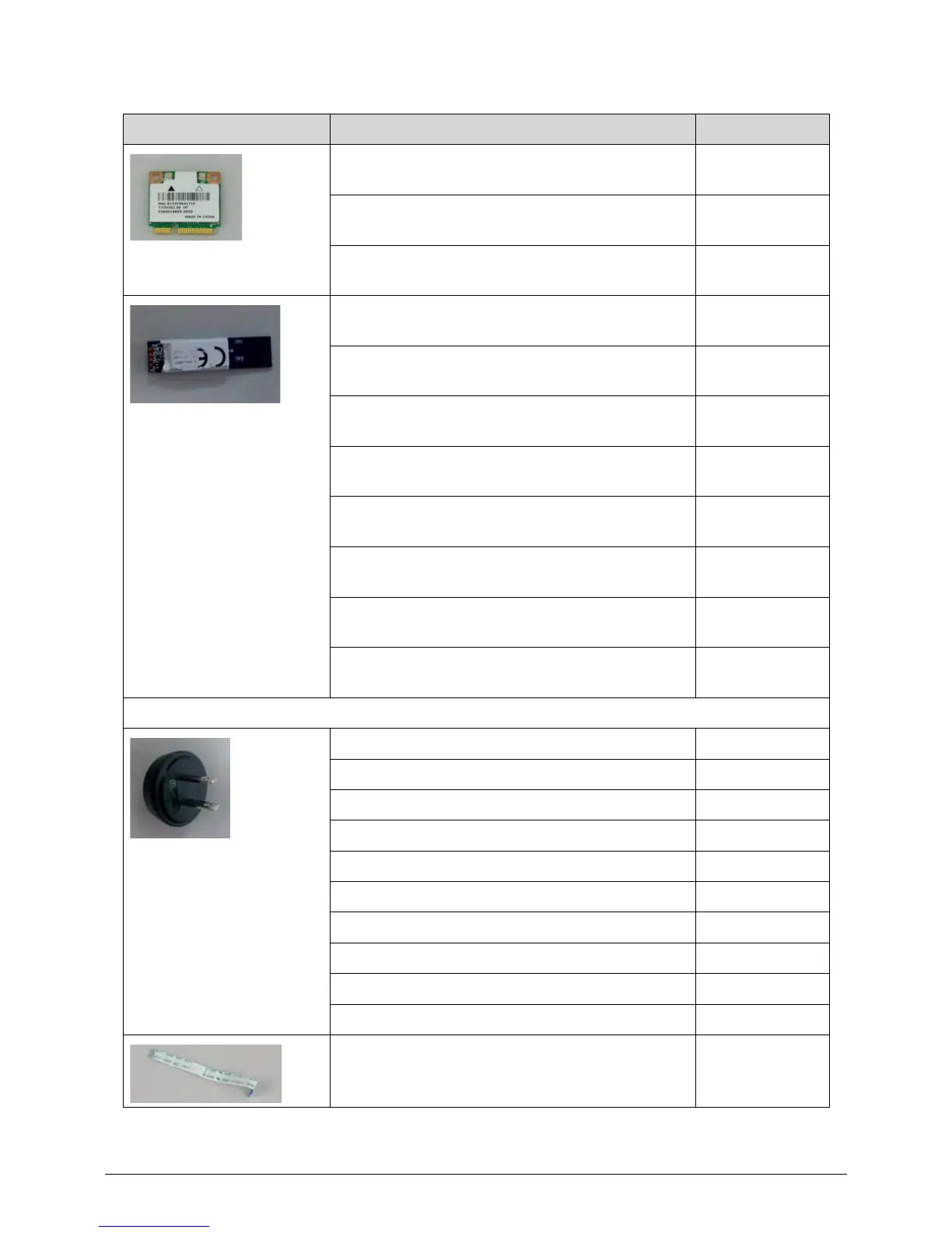 Category Description Acer Part No.