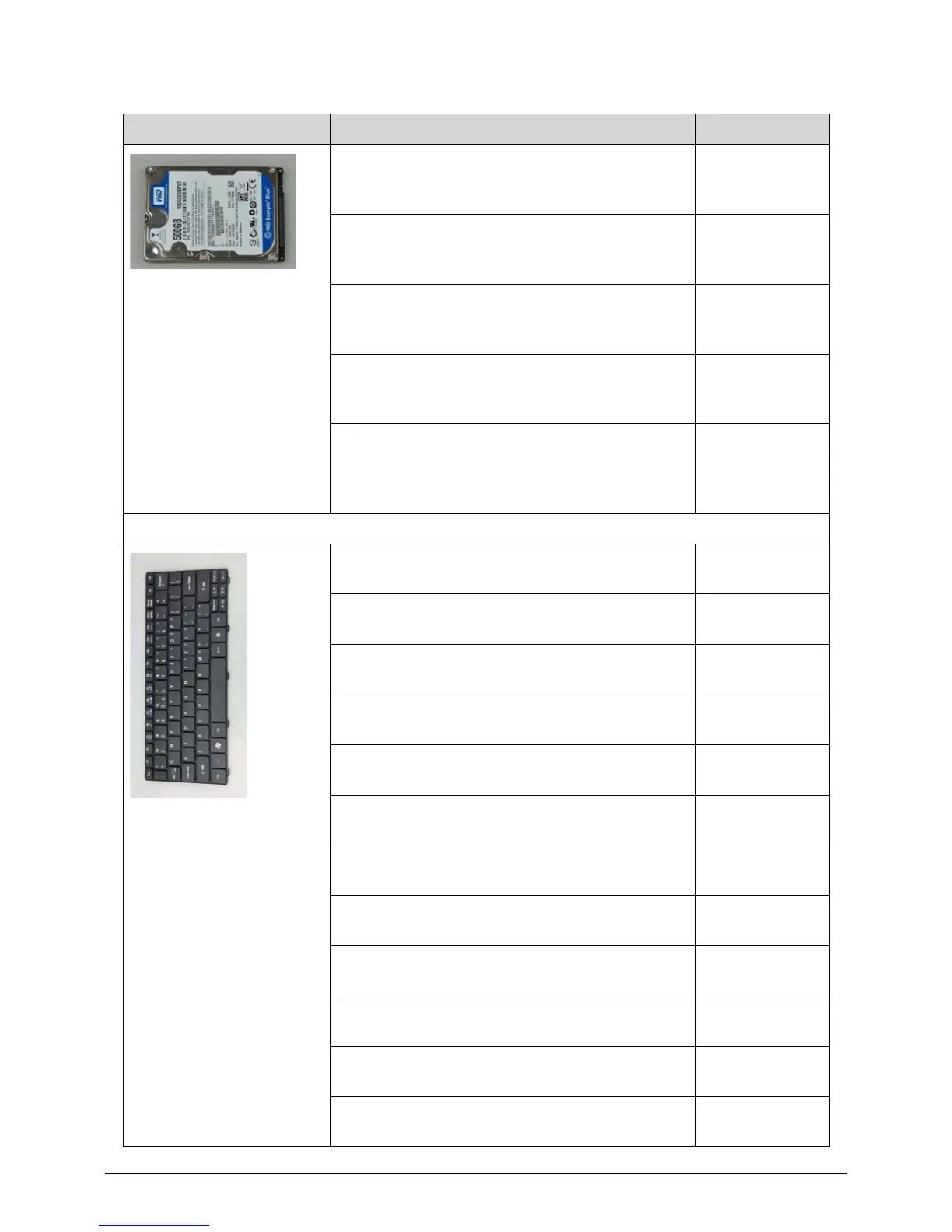 Category Description Acer Part No.