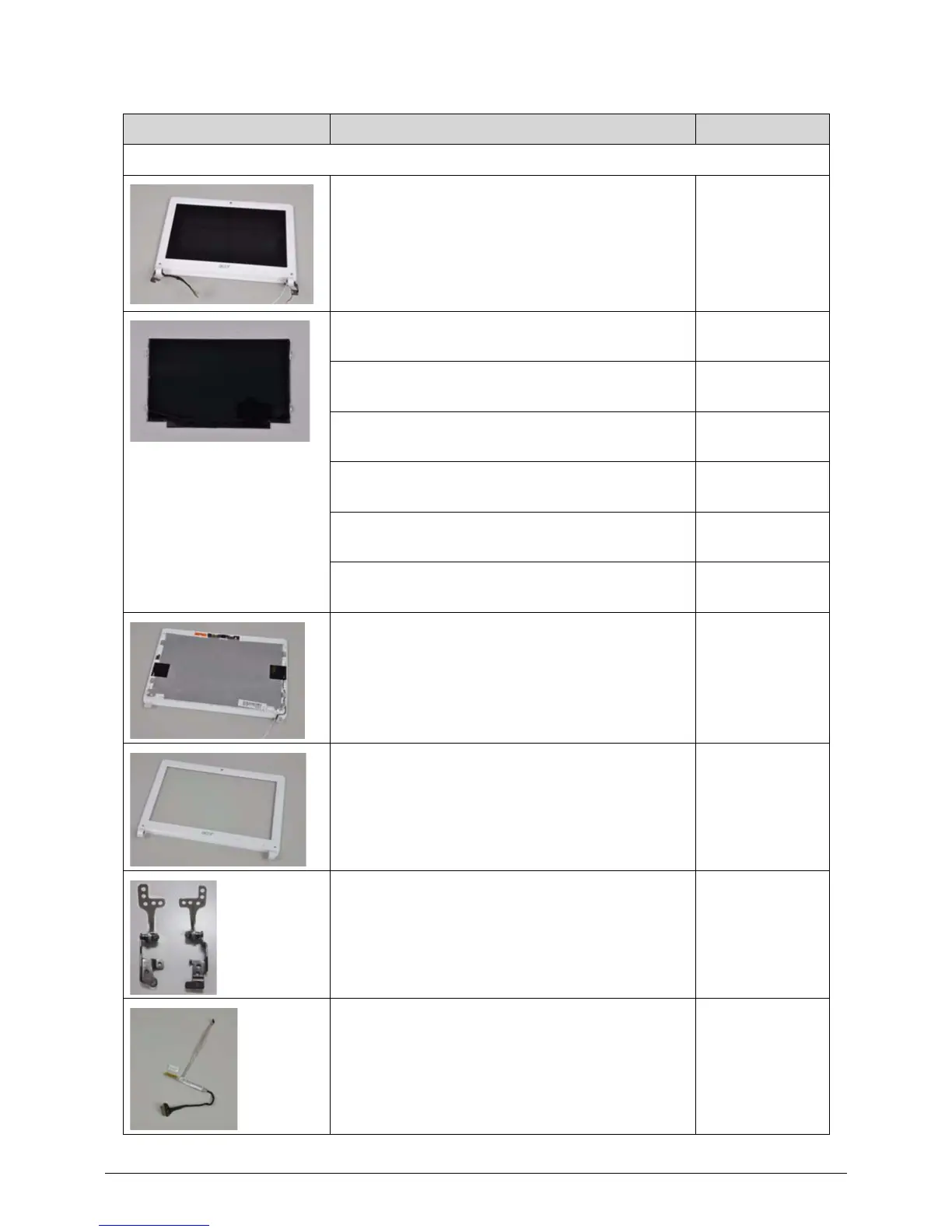 Category Description Acer Part No.