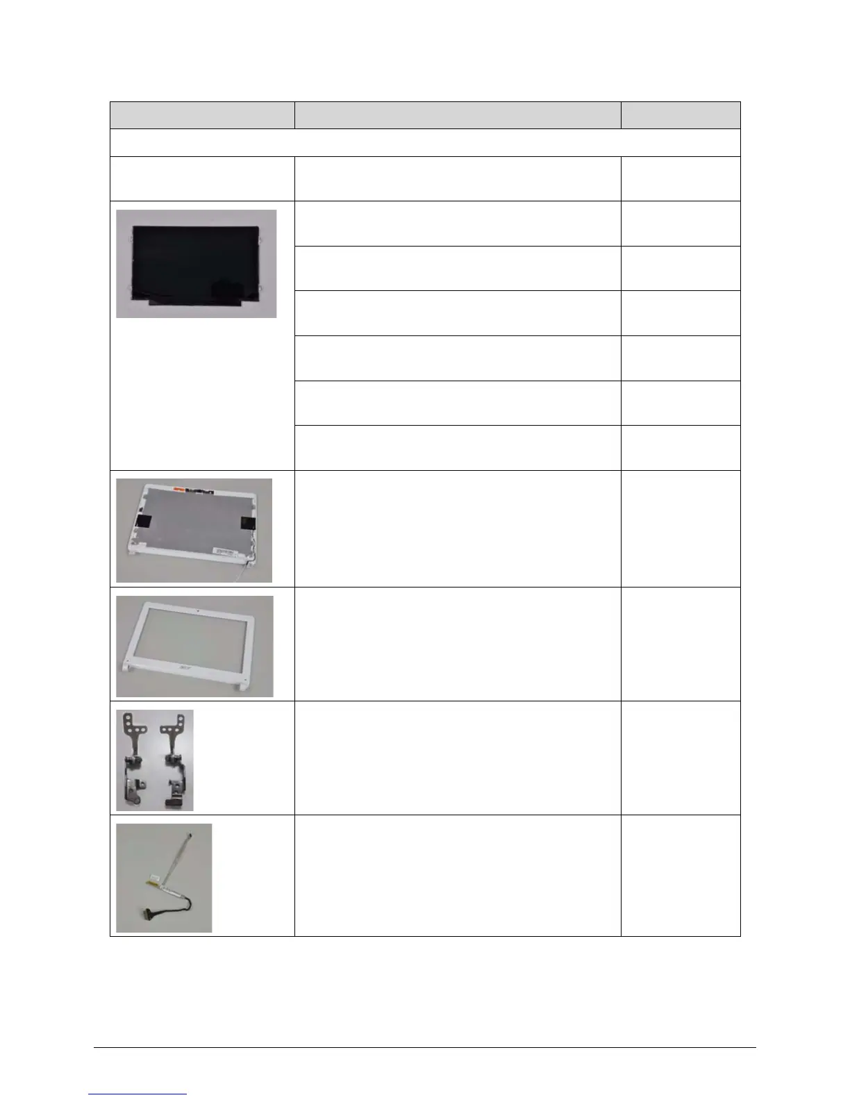 Category Description Acer Part No.