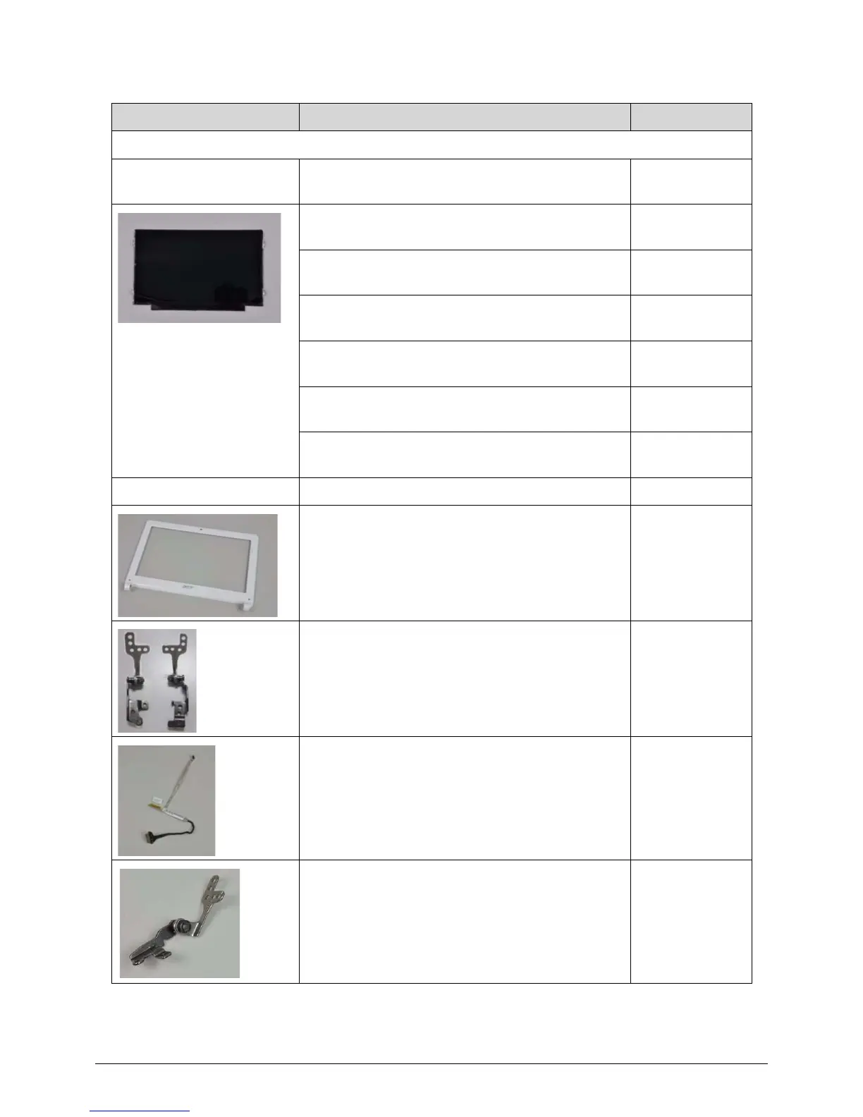 Category Description Acer Part No.