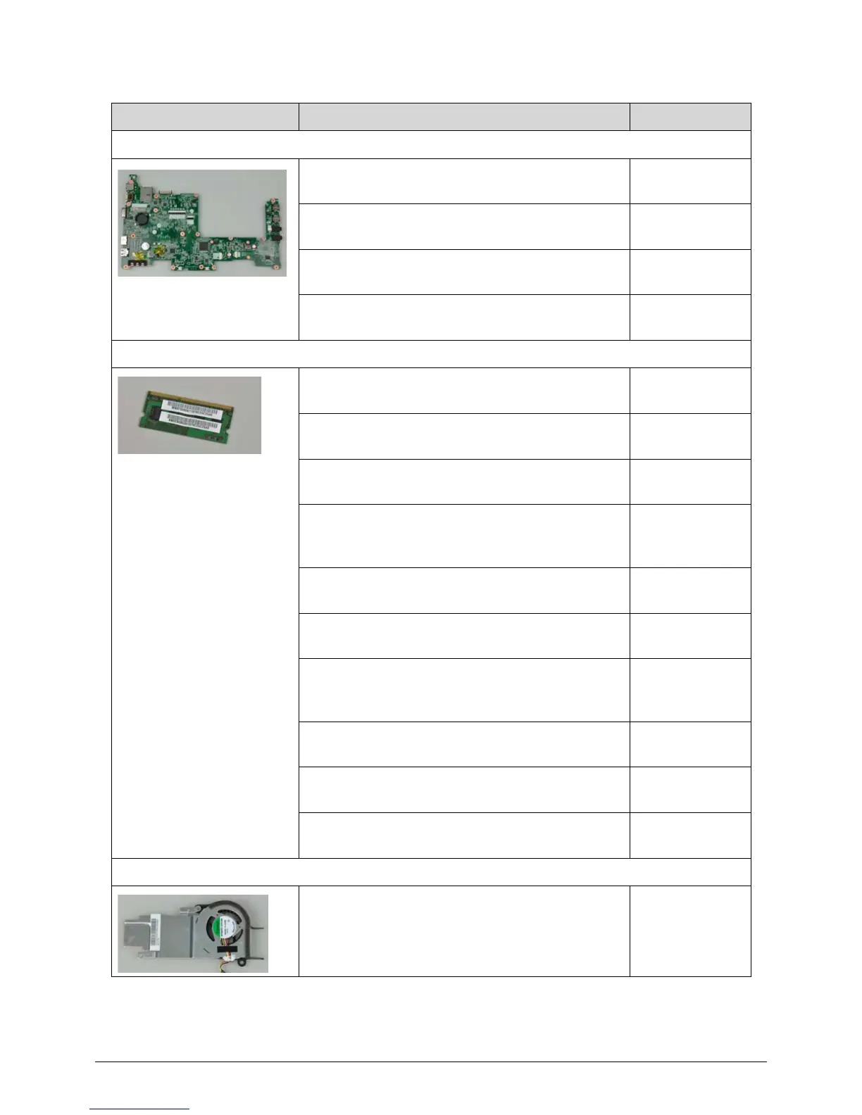 Category Description Acer Part No.