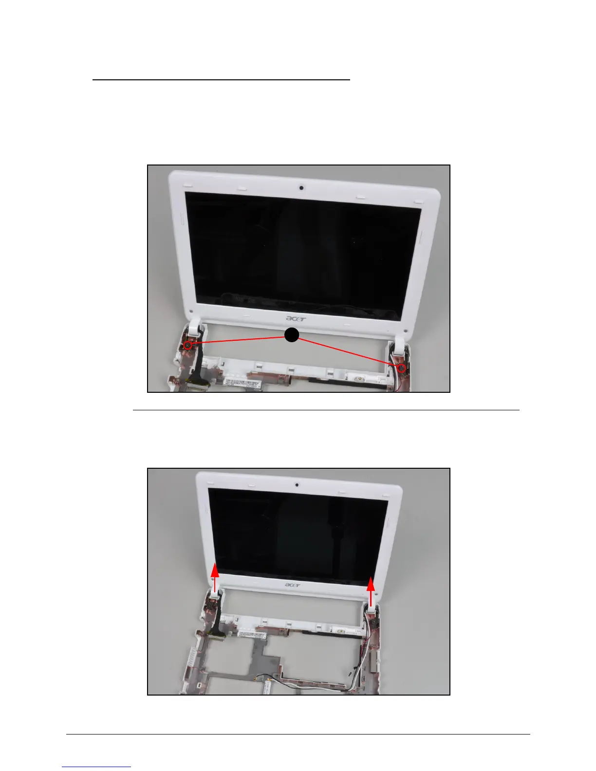 1. Remove the two (2) screws (A) from the LCD hinges (Figure 3-23).
