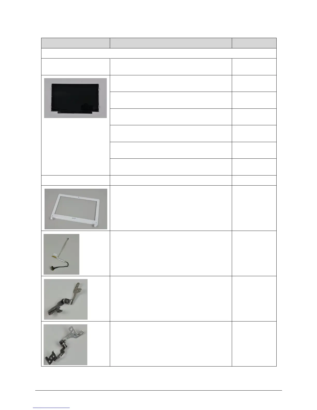 Category Description Acer Part No.