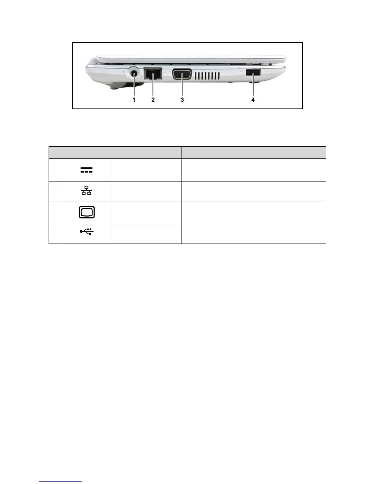 4 USB 2.0 port Connects to USB 2.0 devices (e.g., USB mouse,