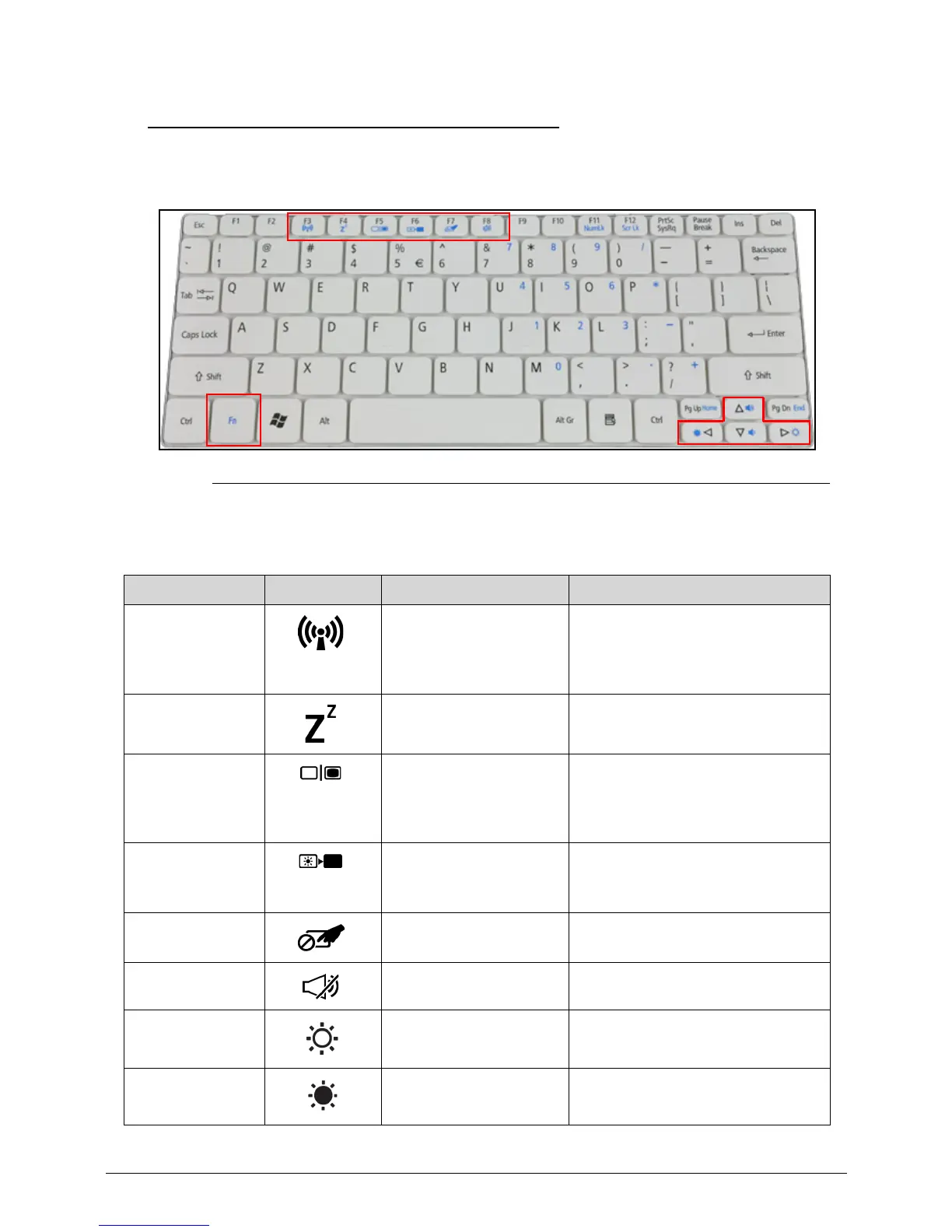To activate hotkeys, press and hold the <Fn> key before pressing the other key in the
