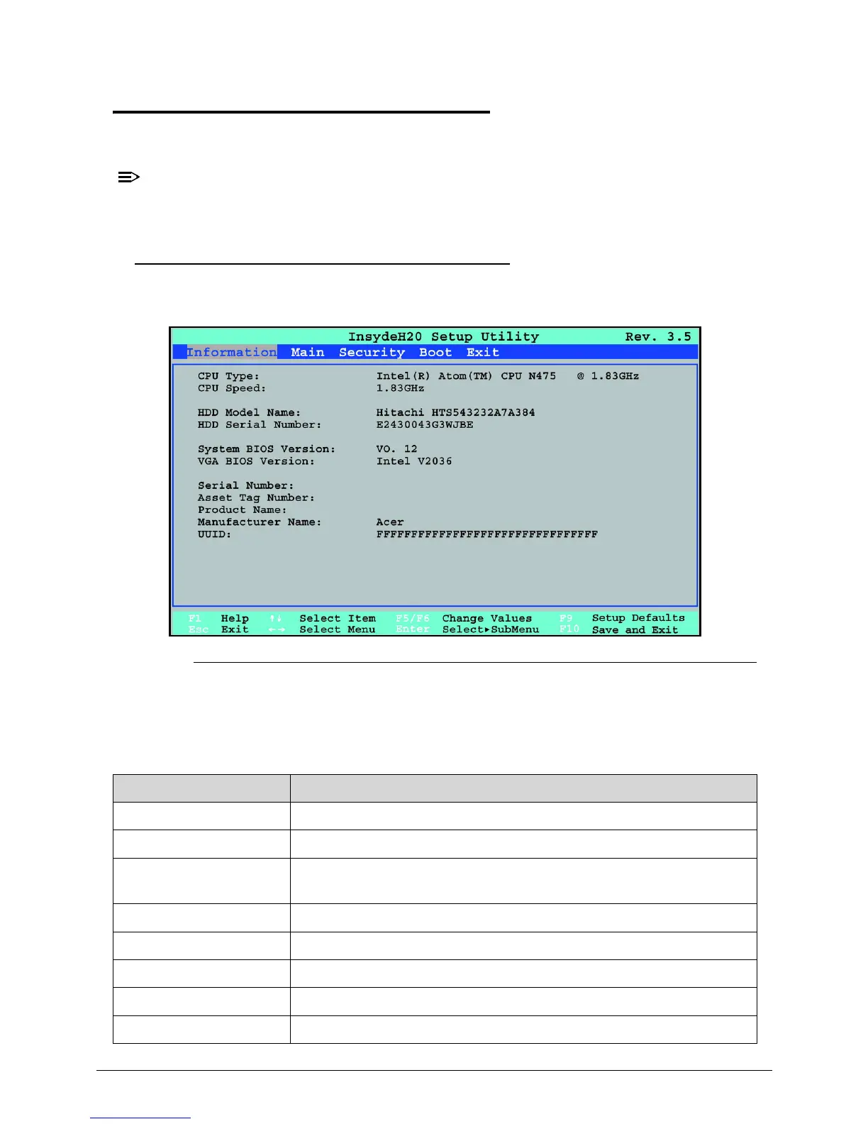 The following is a description of the tabs found on the InsydeH20 BIOS Setup Utility
