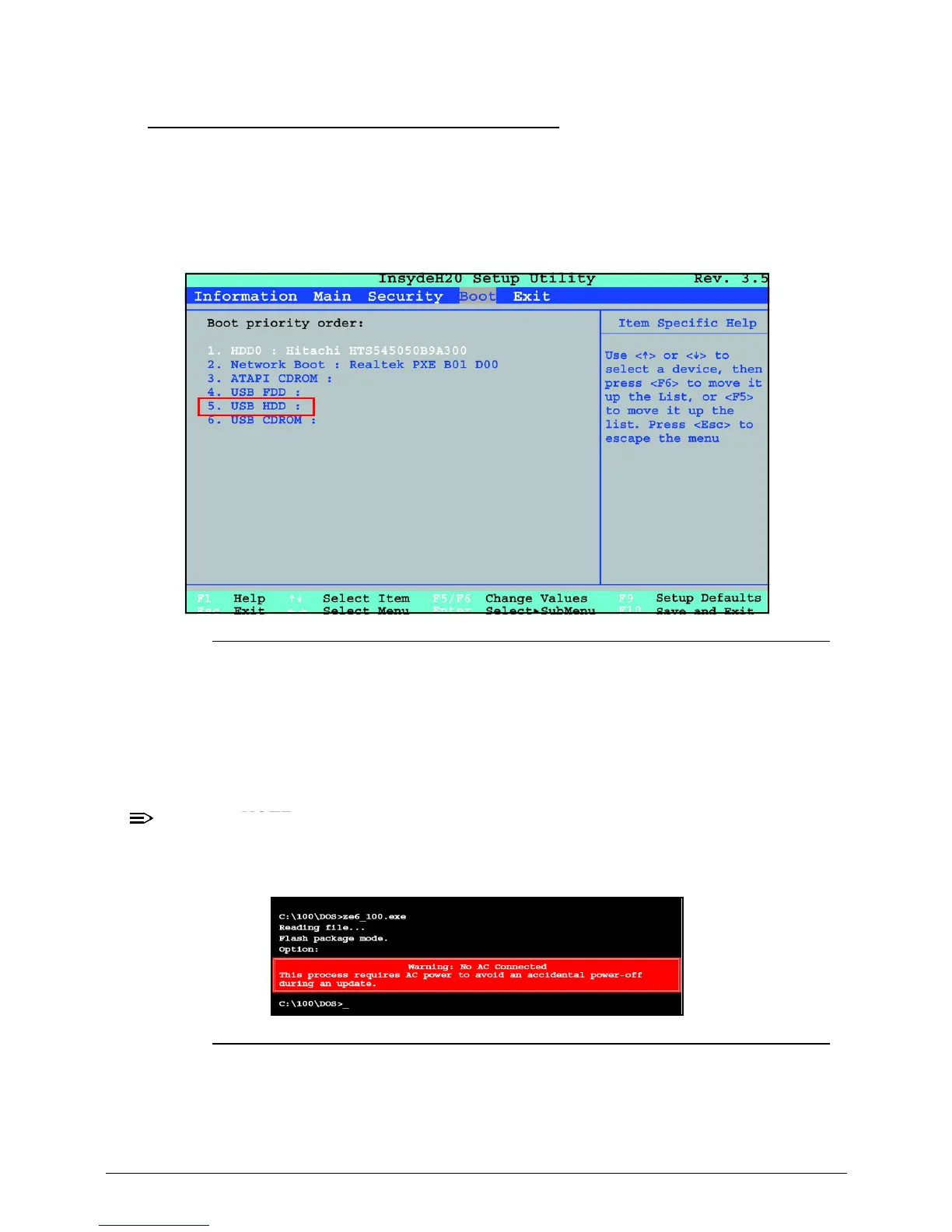 Example: If using USB HDD to Update BIOS, move USB HDD to position 1.