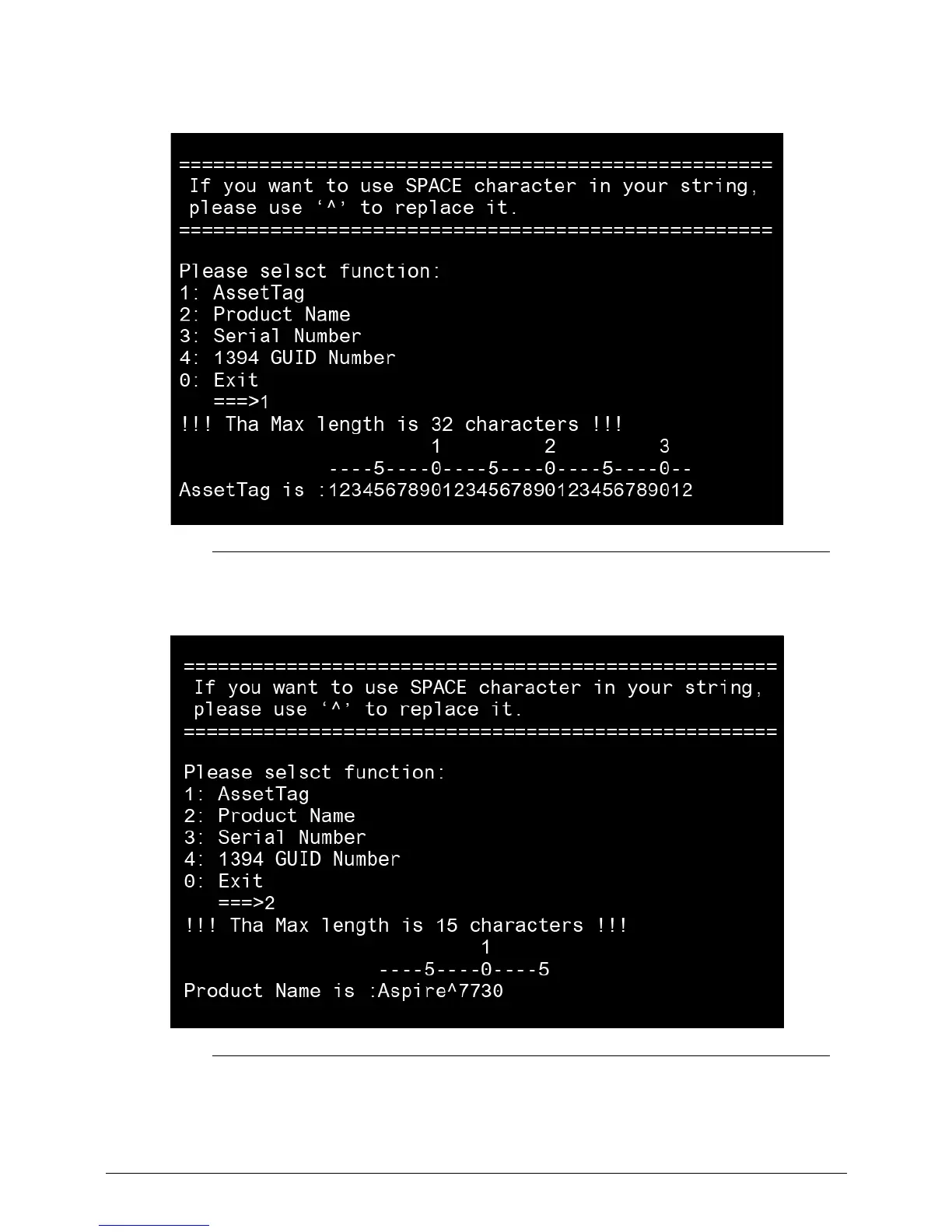 3. Press 1 to modify the asset tag key.
