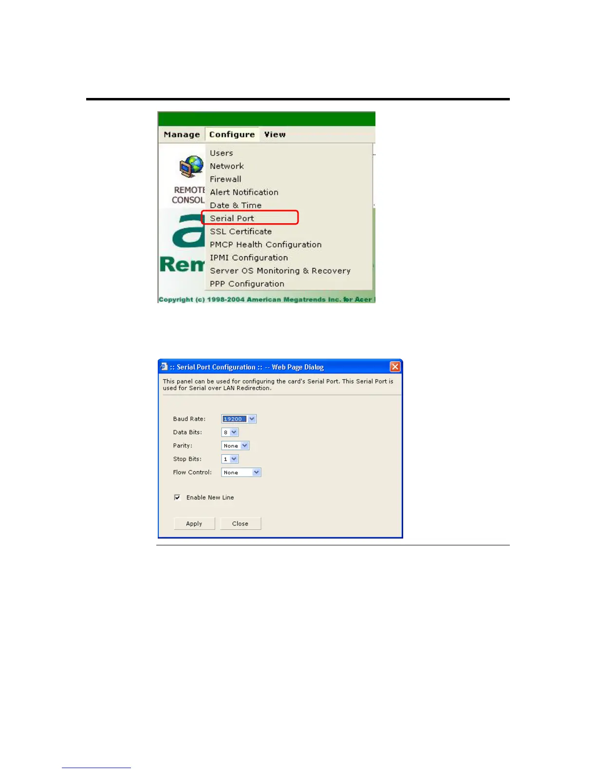 Left click the Serial Port menu item to configure the serial port on your ARMC/2 card.