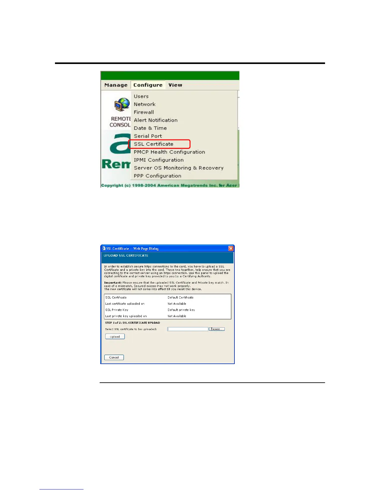 ARMC/2. The Upload SSL Certificate dialog box opens. Here you can upload an SSL