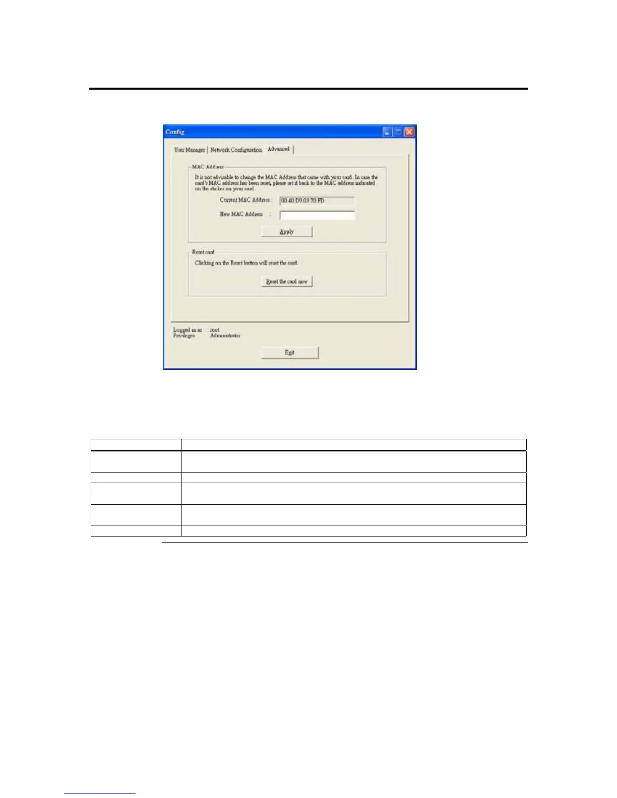 Apply Button The Apply button allows you to set the ARMC/2 card with the MAC address that you