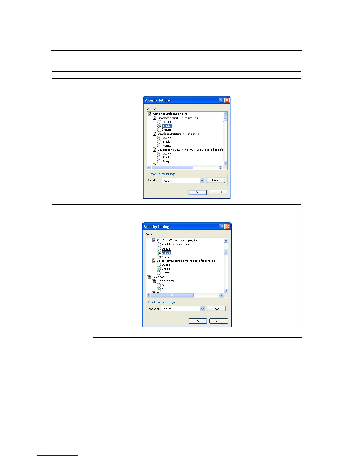 5 The Security Settings window opens. Left click the Enable button under the Download signed ActiveX