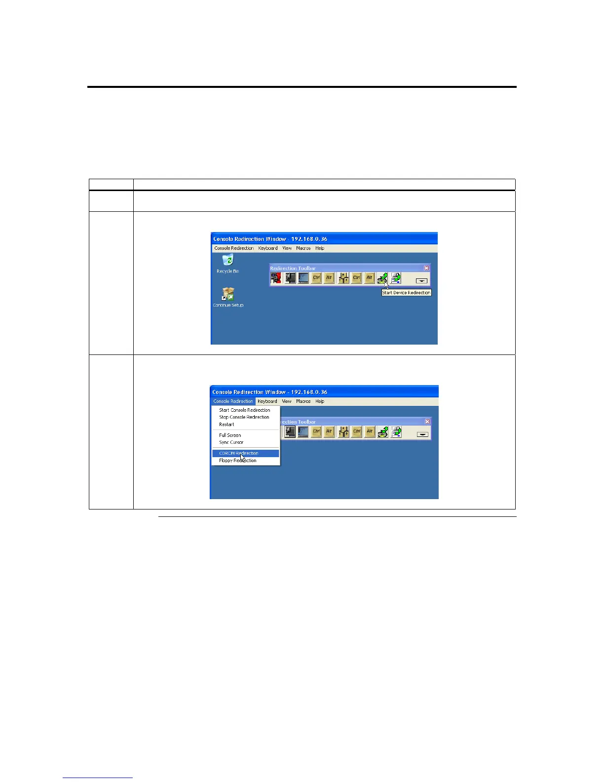 2 Use the Console Redirection toolbar to open the CD-ROM Drive Redirection Dialog Box.