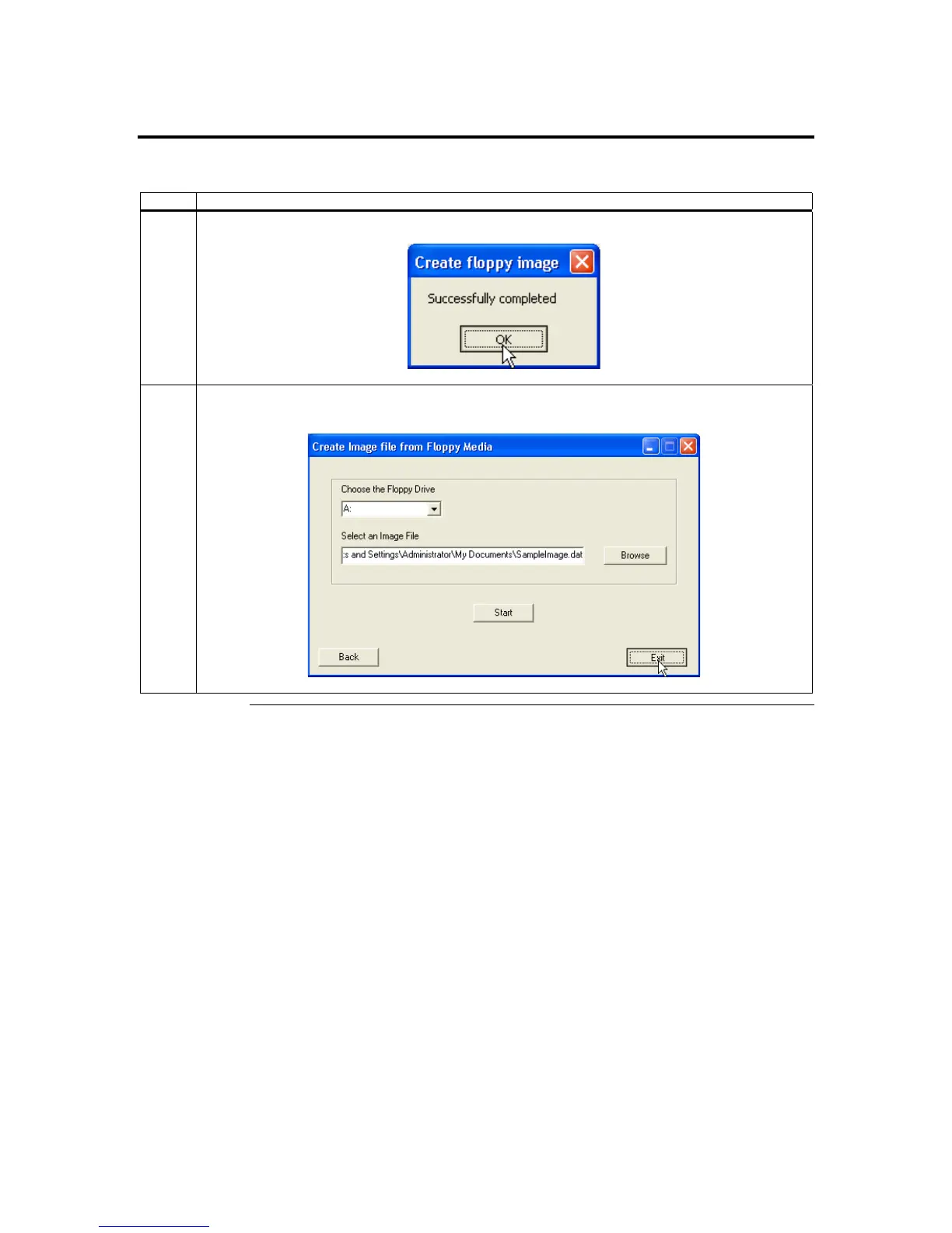 5 Once the floppy image is created, a confirmation dialog box opens. Left click the OK button.