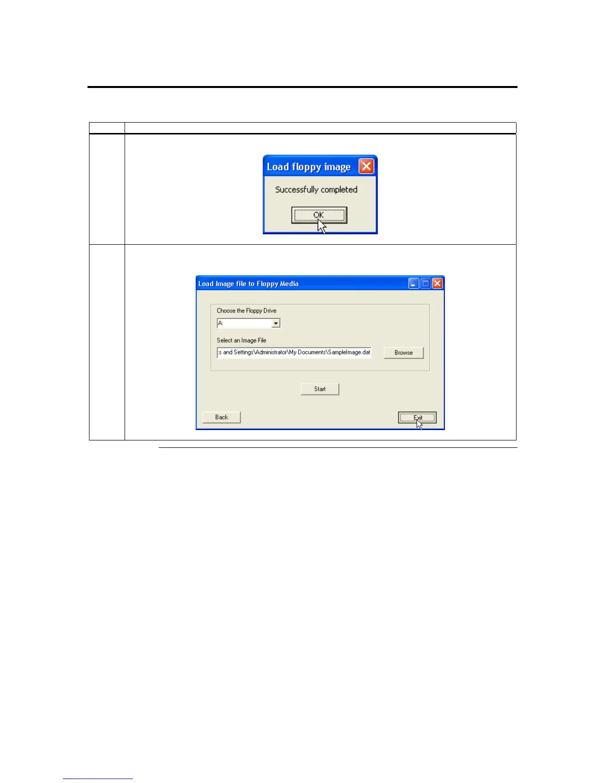 7 Once the floppy image is transferred, a confirmation dialog box opens. Left click the OK button.