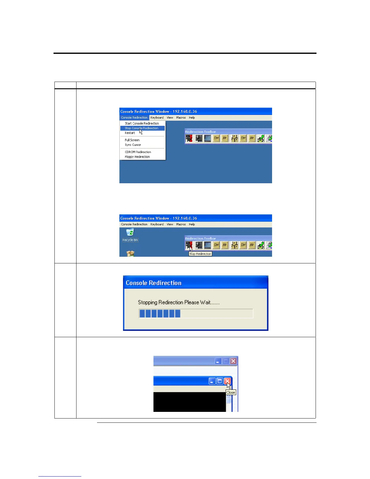 3 Once Console Redirection has stopped, you can close both the Console Redirection window. You can