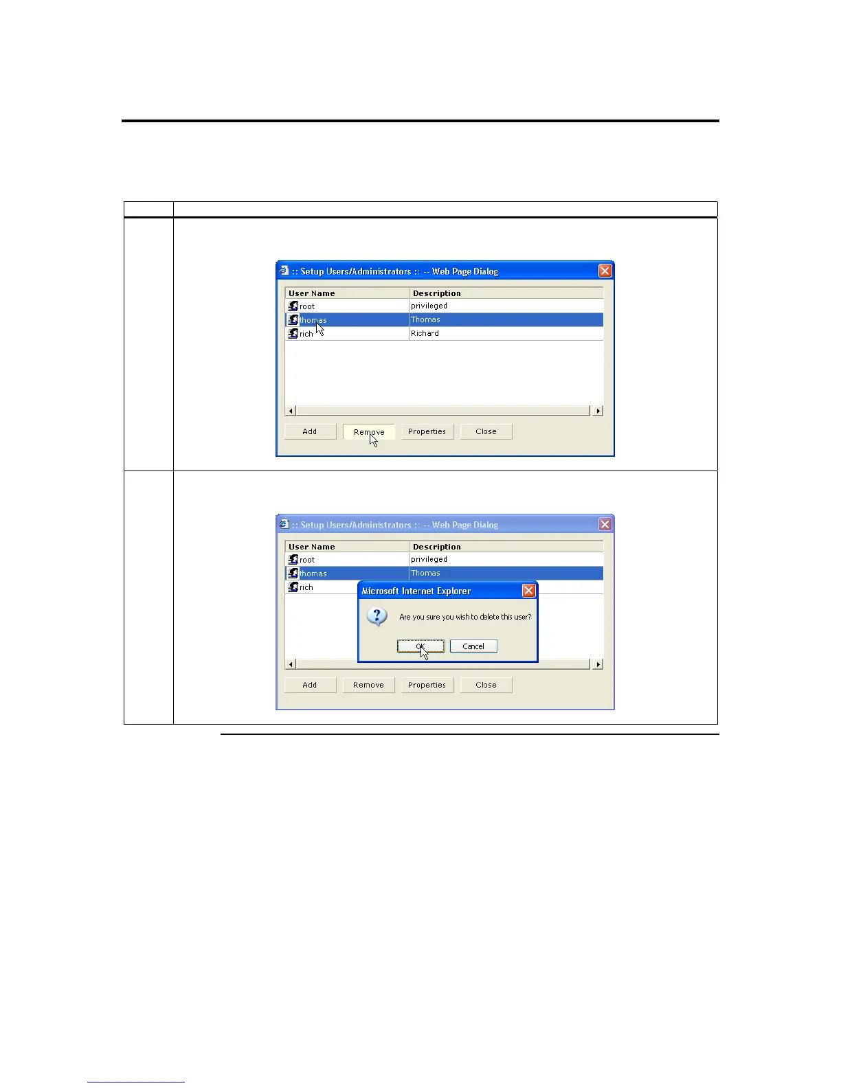 Follow the steps in the table below to remove an account: