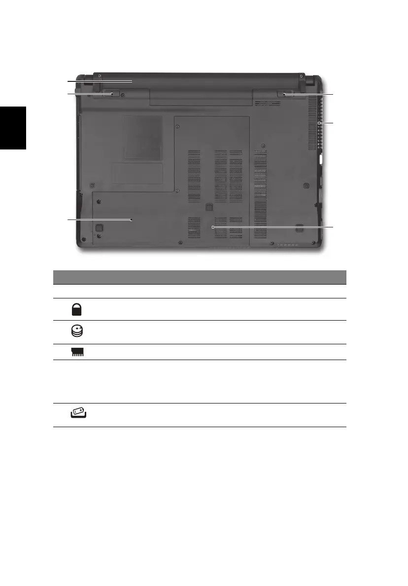 4 Speicherfach Enthält den Hauptspeicher des Computers.