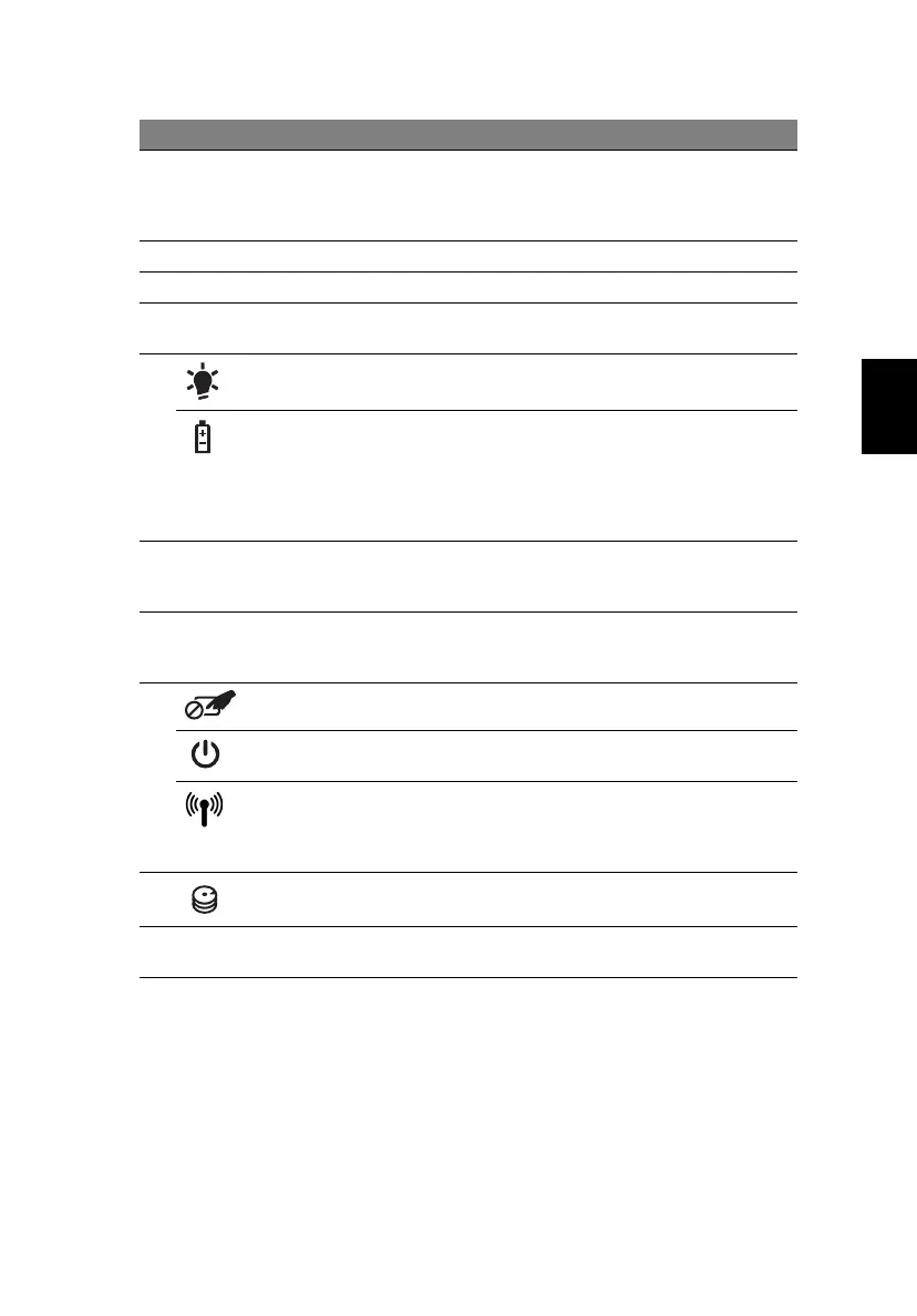 9 Panel táctil Activa o desactiva el panel táctil interno.