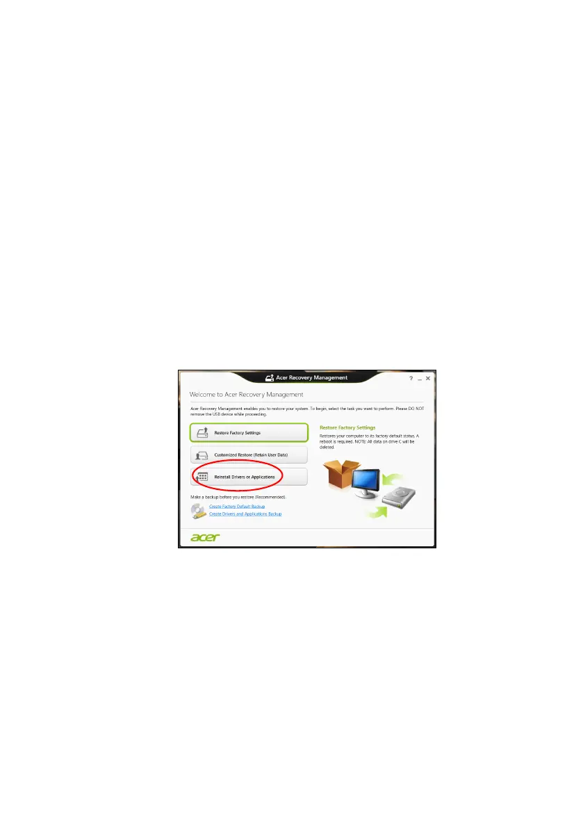 1. From Start, type 'Recovery' and then click Acer Recovery