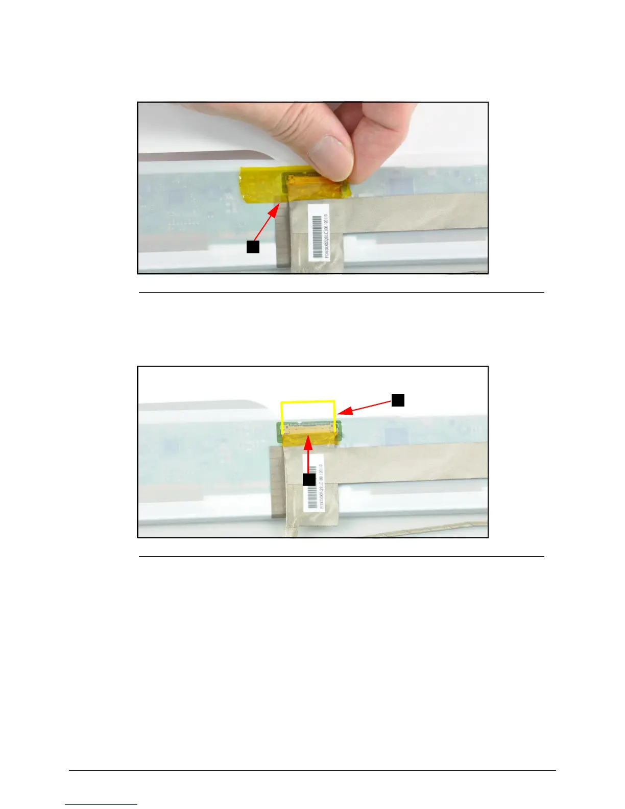 3. Remove the yellow tape (C) securing the LVDS cable to the LCD panel connector