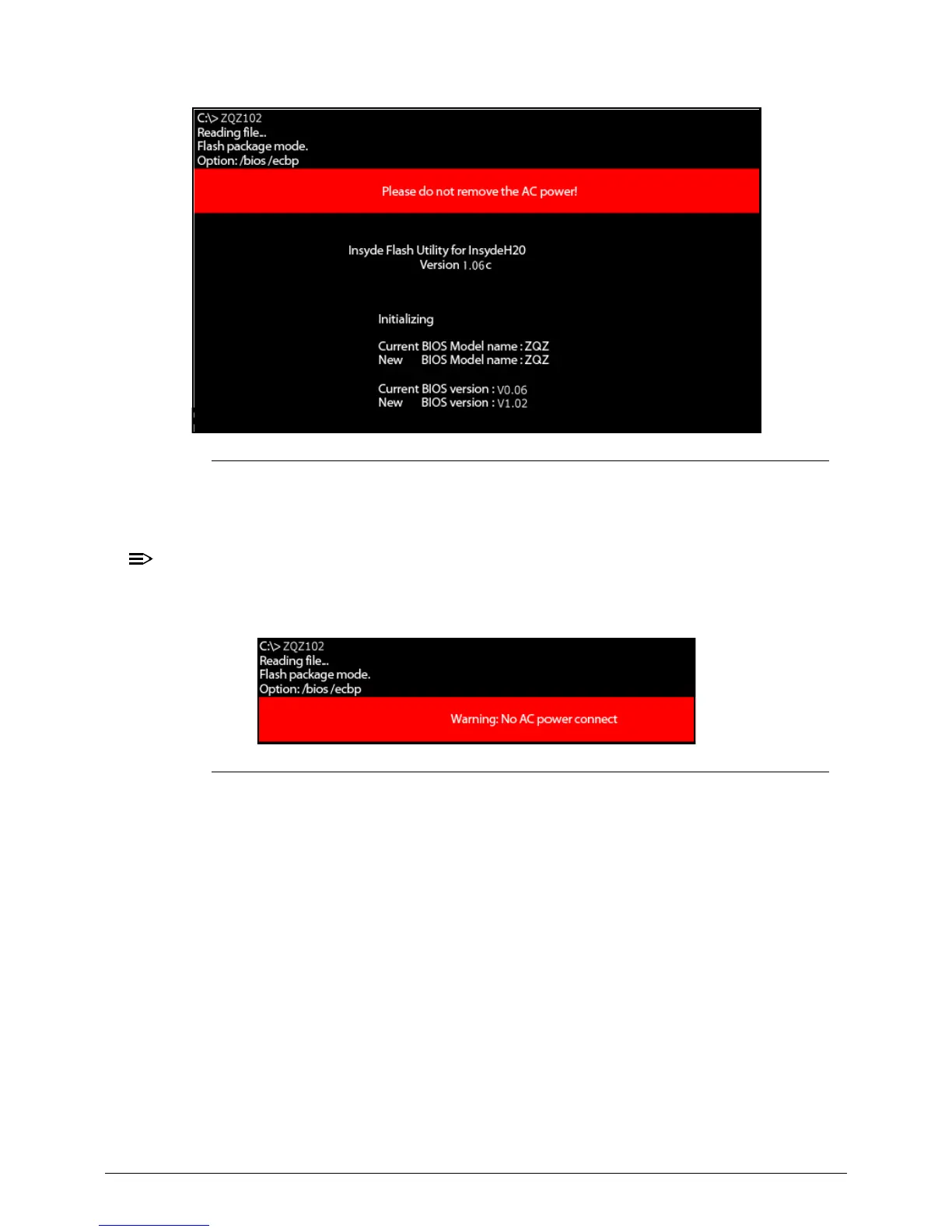 If AC power is not connected, the following message is shown (Figure 2-14). Plug