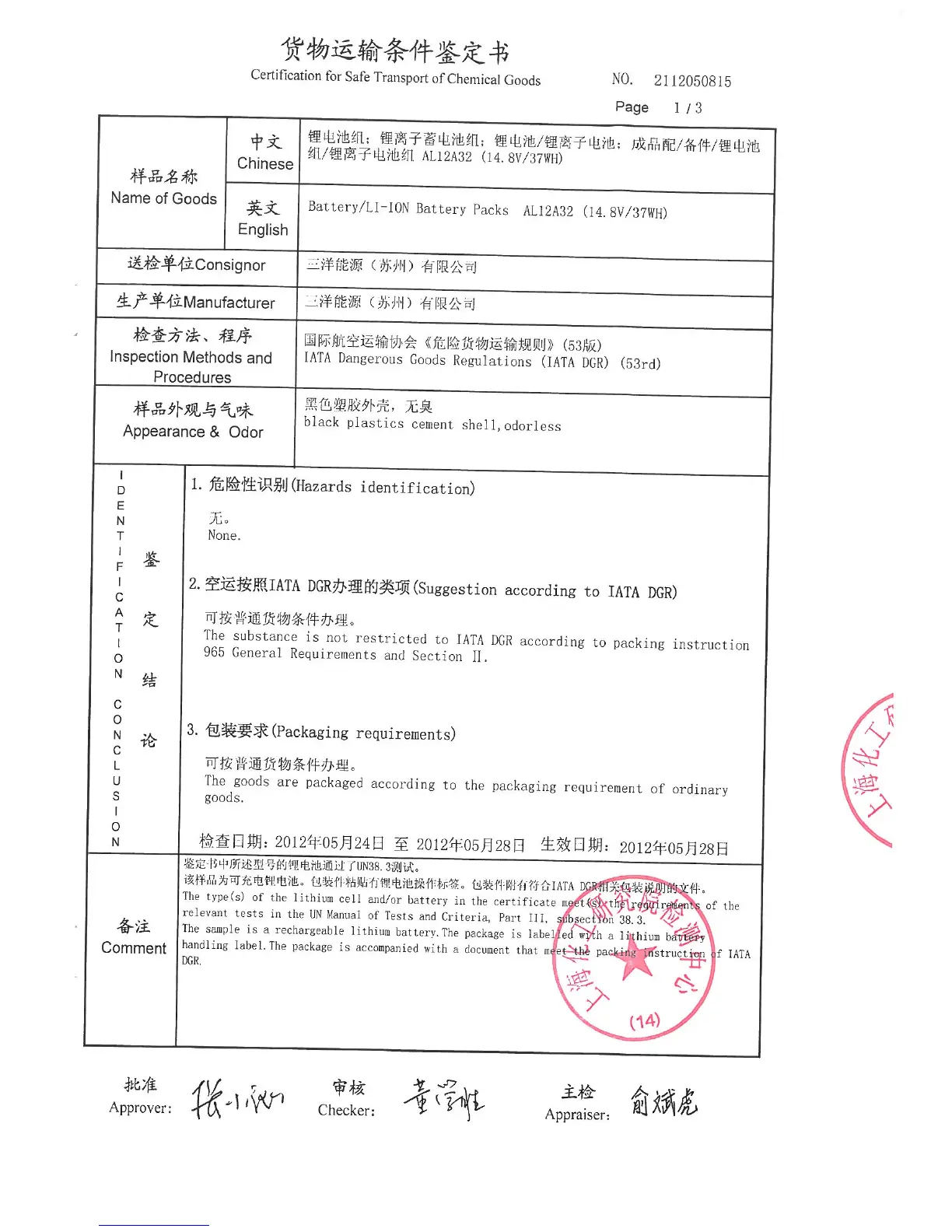 Acer Aspire E1-422 - Identification and Conclusion; Hazards Identification; IATA DGR Classification Suggestion; Packaging Requirements