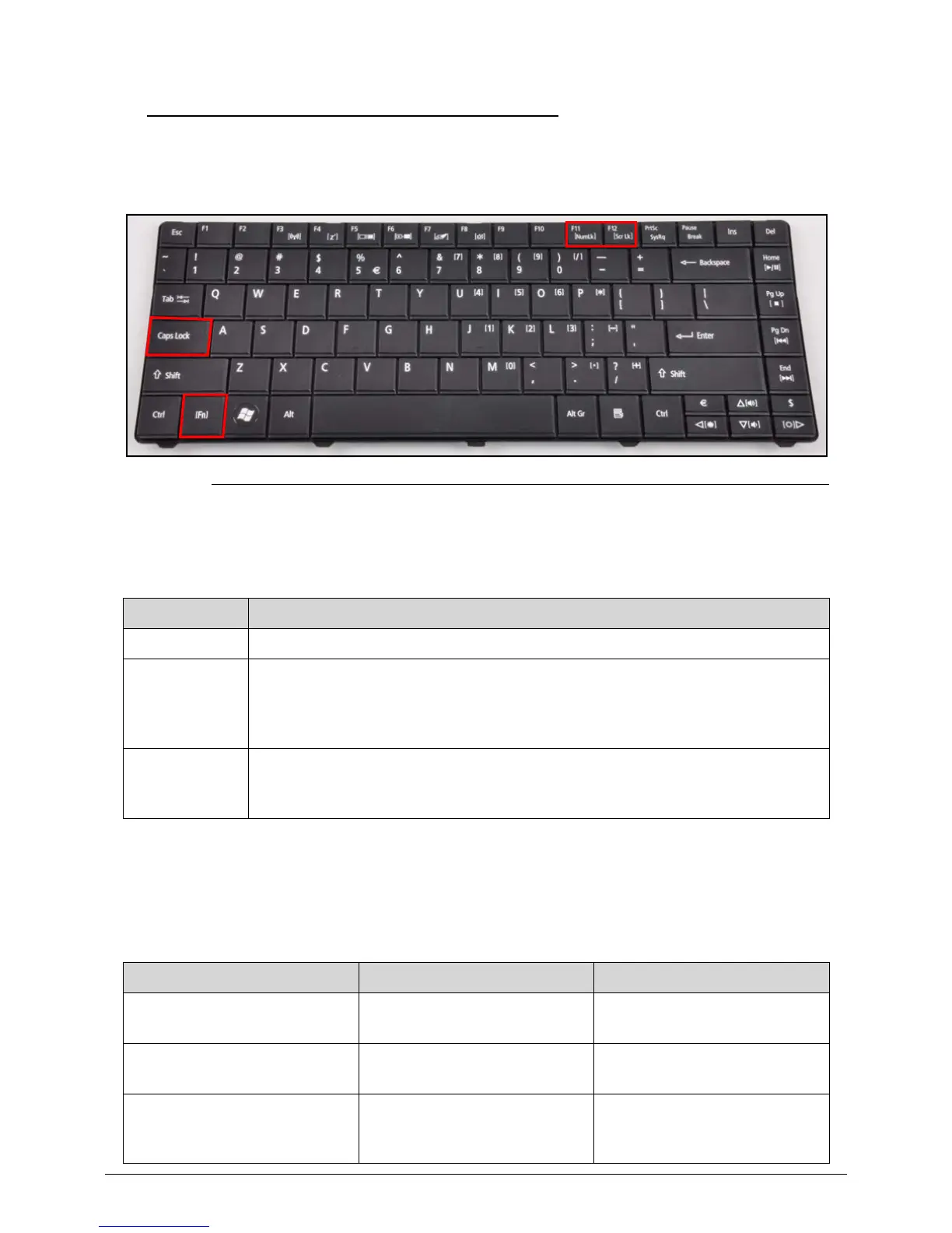 The keyboard has three lock keys which can be toggled on and off.