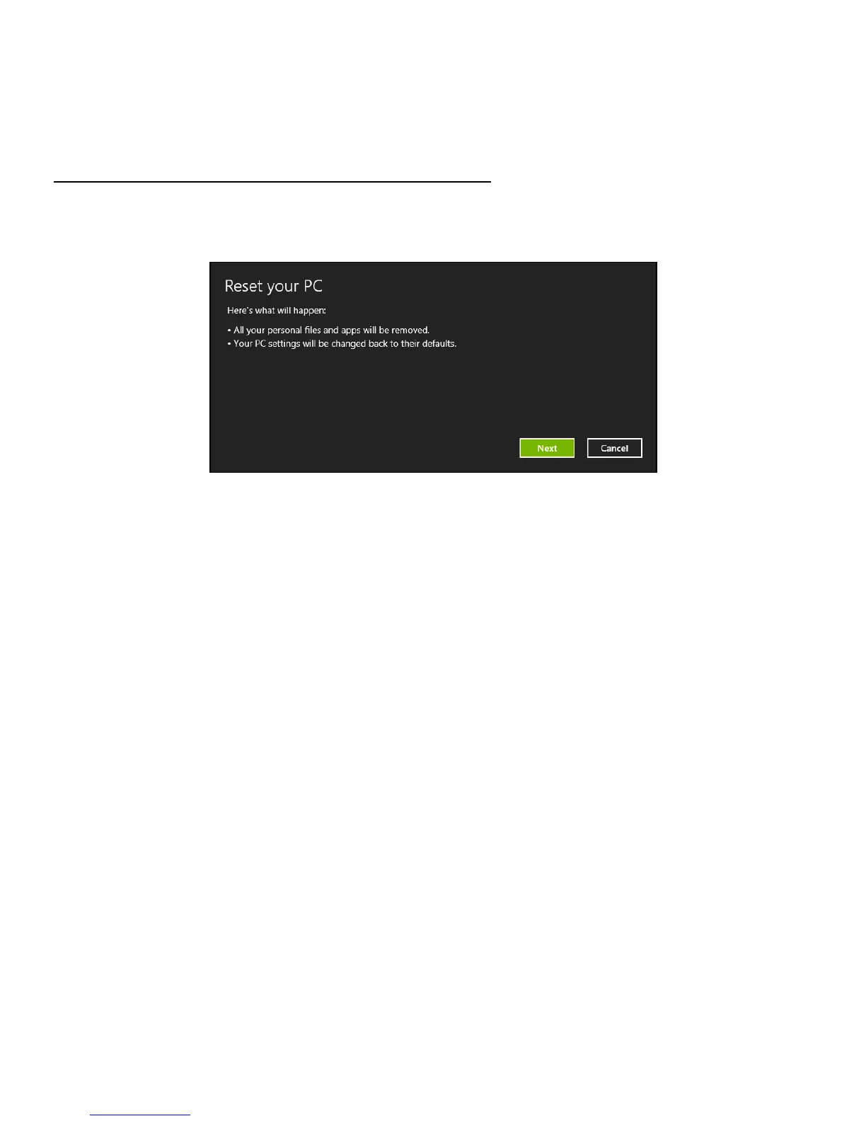 Caution: Reset your PC will erase all files on your hard drive.