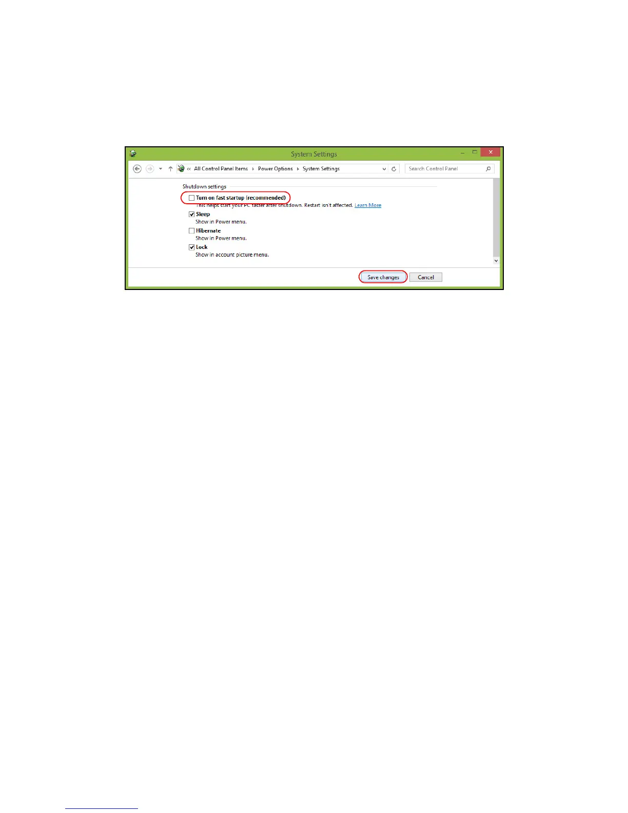 6. Scroll down and disable Turn on fast startup.